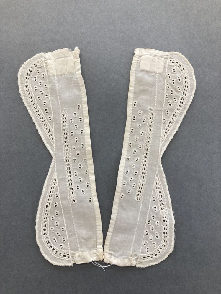Paar manchetjes of mouwopslagen van fijn wit linnen met gaatjes-borduurwerk