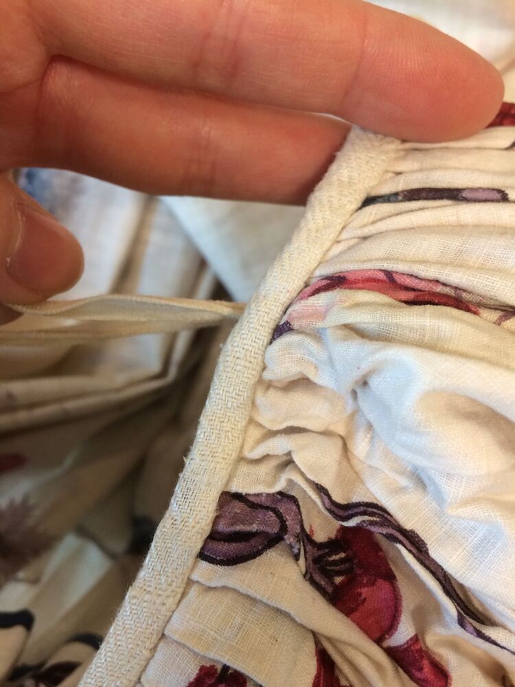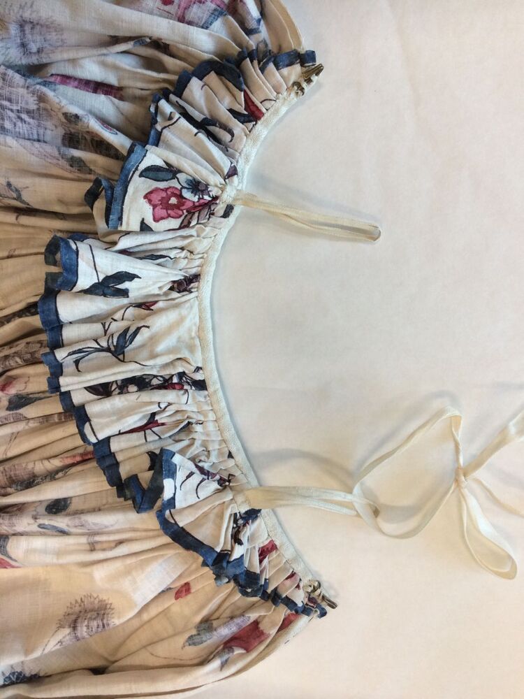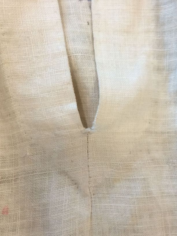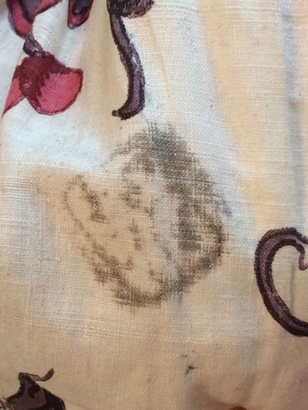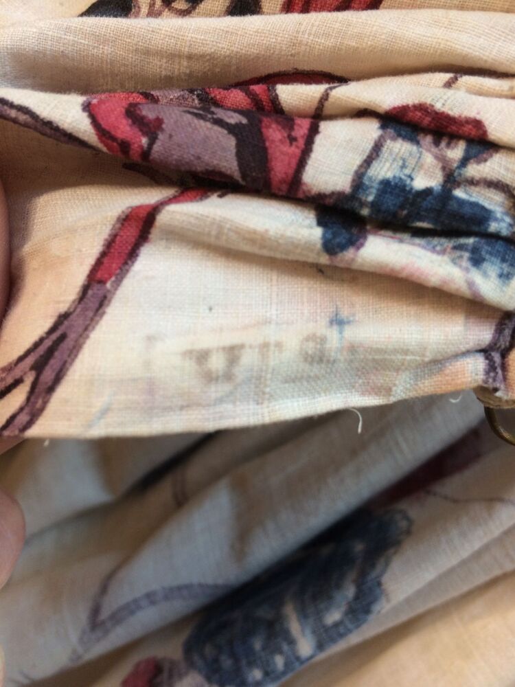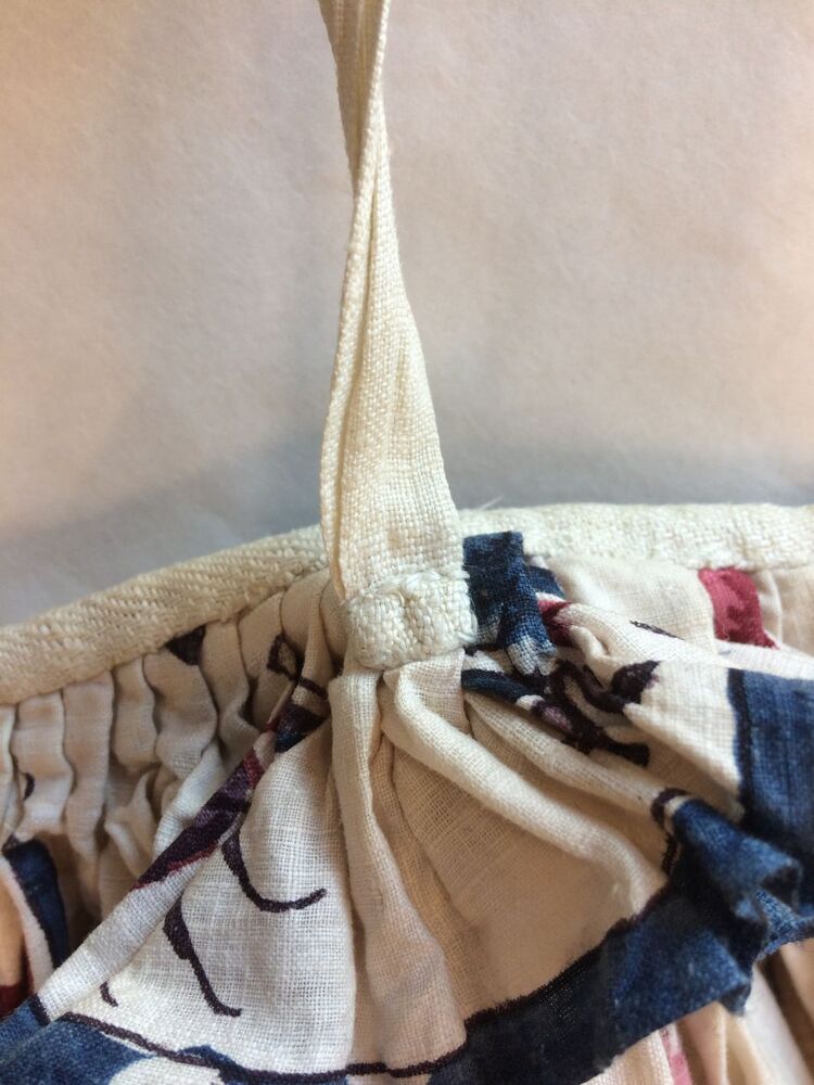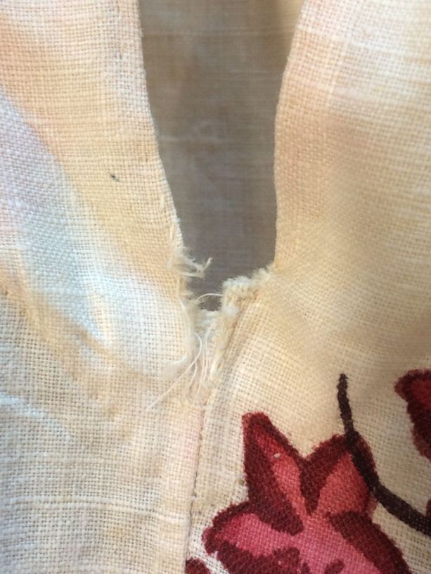 Sitsen vrouwenrok, met rankende toefjes bloemen en randmotief met bloeiende bomen, bloemvazen, jagers, druivenplukkers, honden, konijnen en vogels.