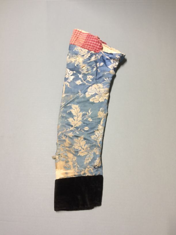 Een van twee mouwen, behorende bij onderst oerlof bestaande uit diverse delen van bedrukt katoen, sits en zijde, onderdeel van aankleding Hindelooper vrouw
