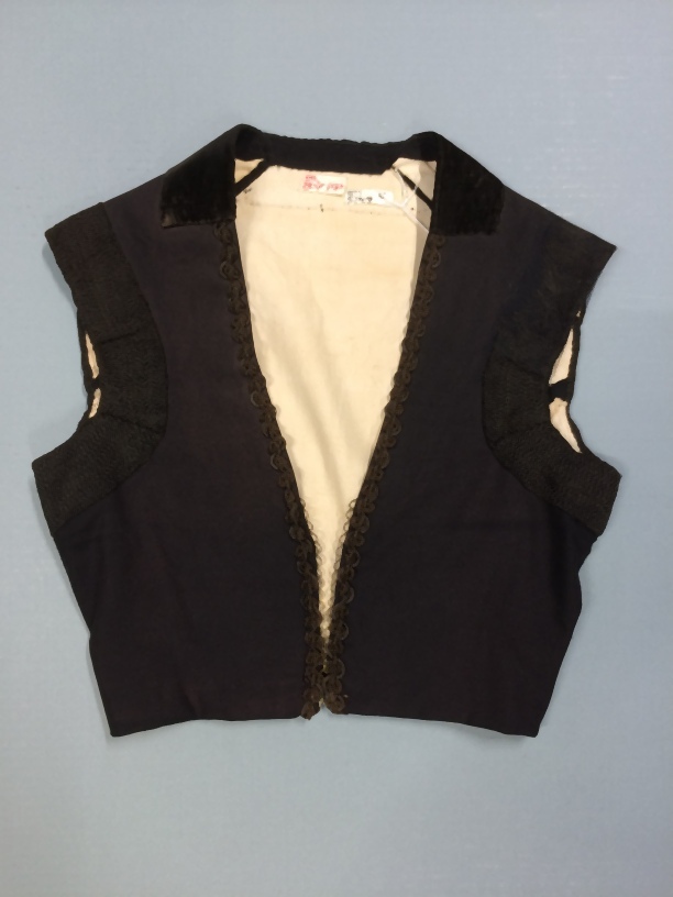 Hindelooper oerlof of rijglijf, van zwarte wol, onderdeel van aankleding ongetrouwd Hindelooper vrouw