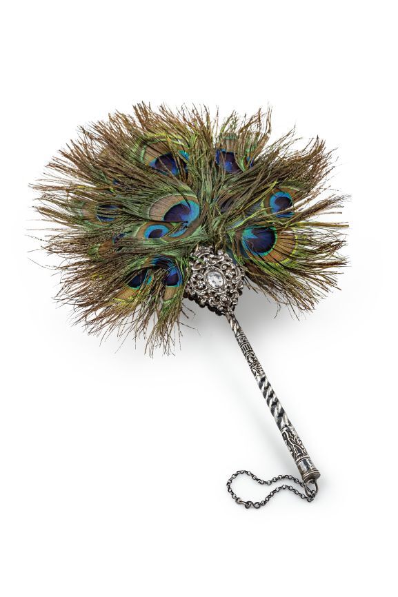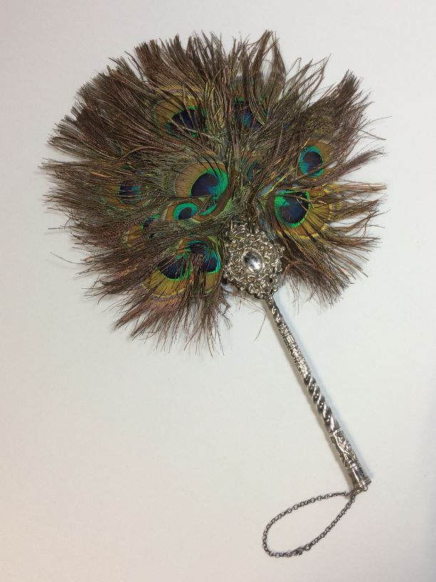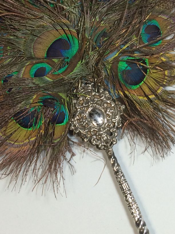 Waaier met zilveren montuur, oorspronkelijk breischede en blad van pauwenveren