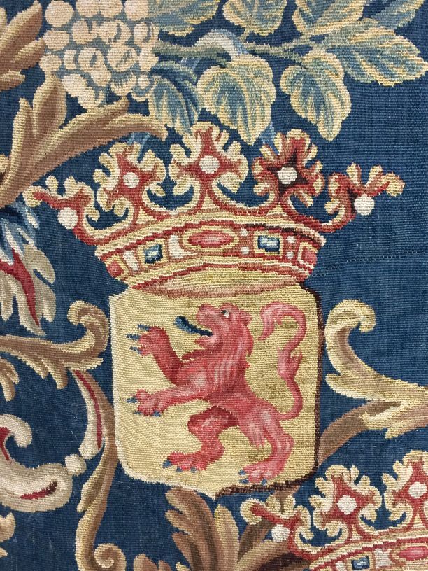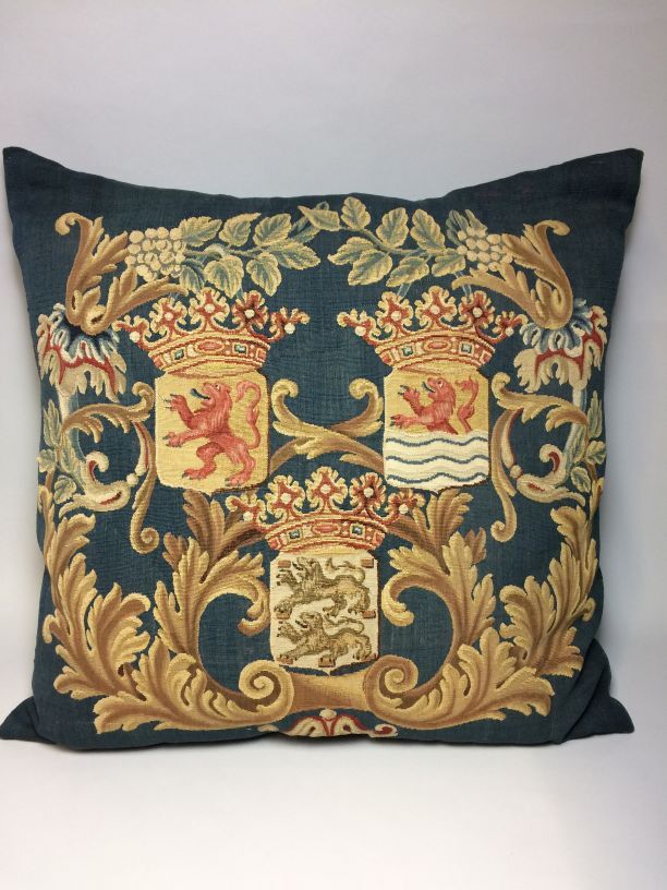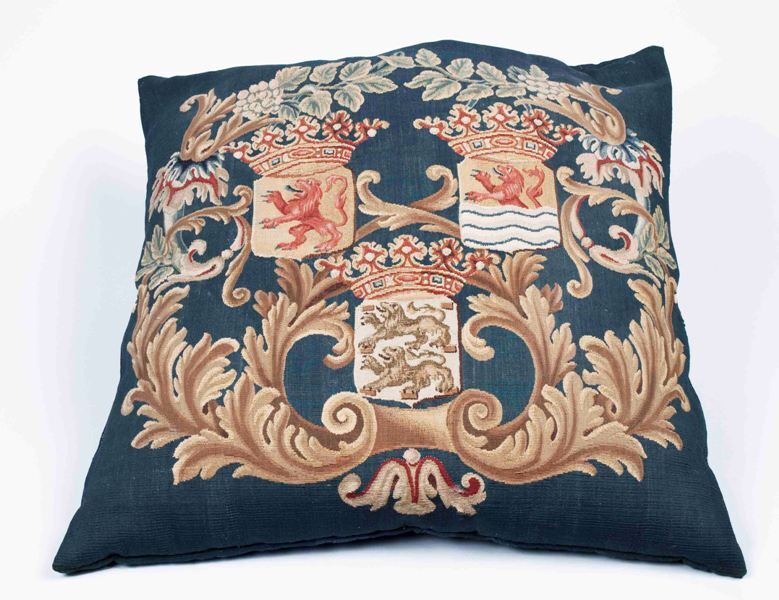 Kussen gobelin weefsel met wapen van Holland, Zeeland en Friesland