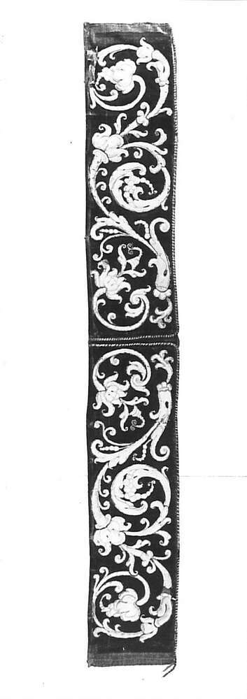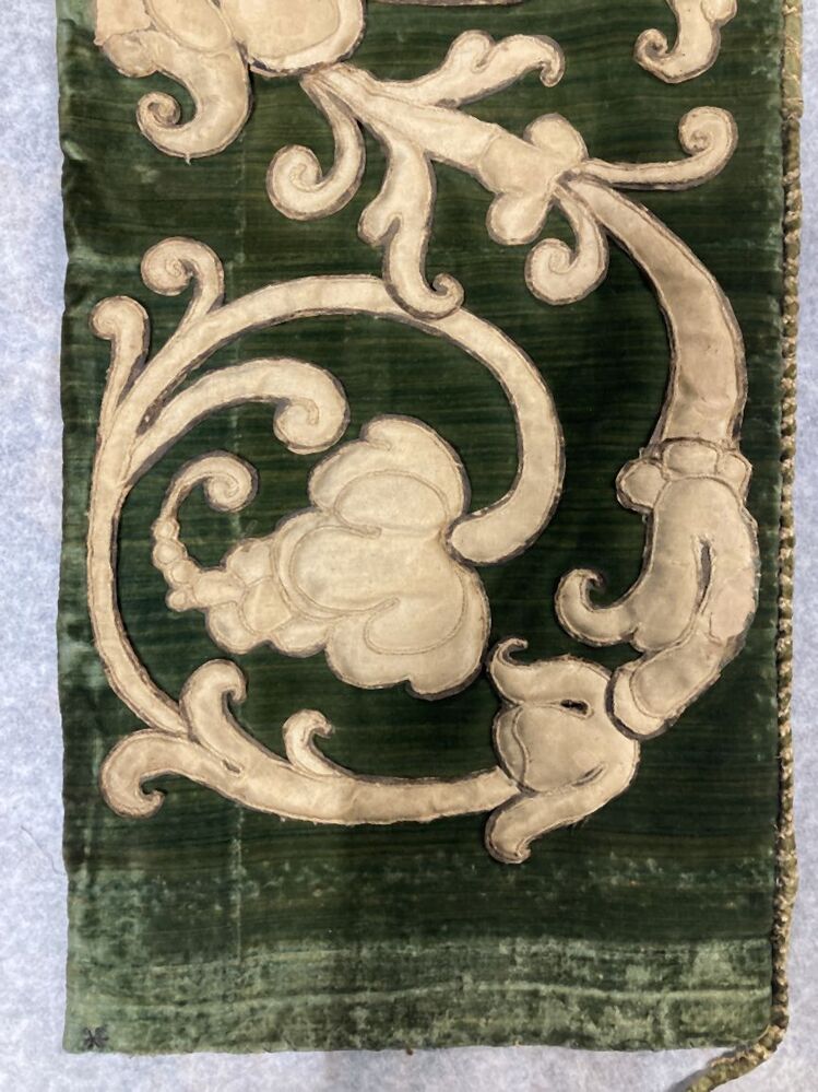 Schoorsteenkleed van groen fluweel met beige reliëf-applicatie