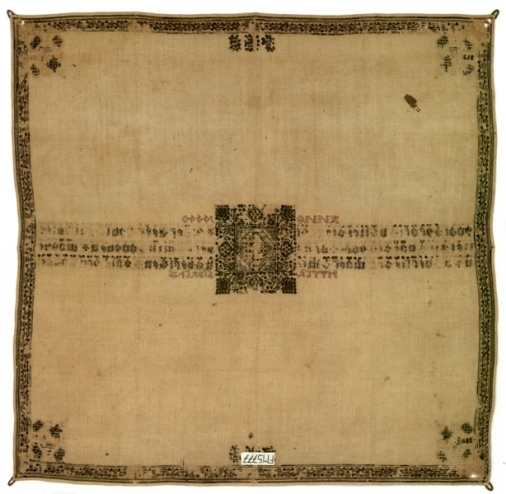 Knottedoek met vierkant motief en tekst van Pitter Sibrens, 1666