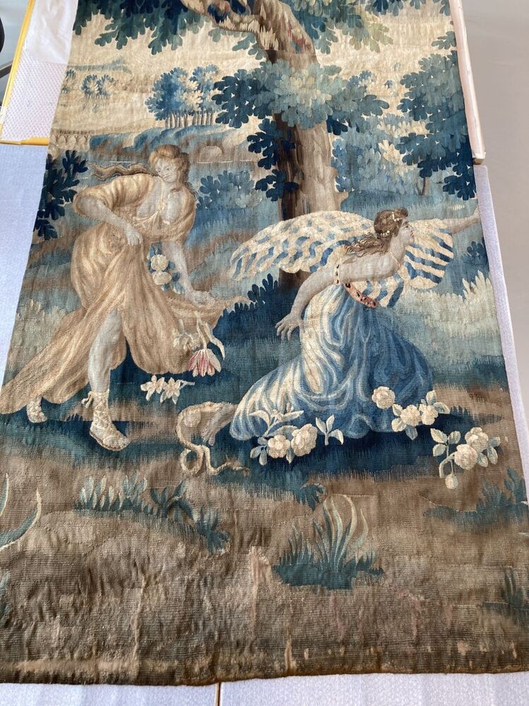 Fragment van groenwerktapijt of landschapsverdure met Eurydice