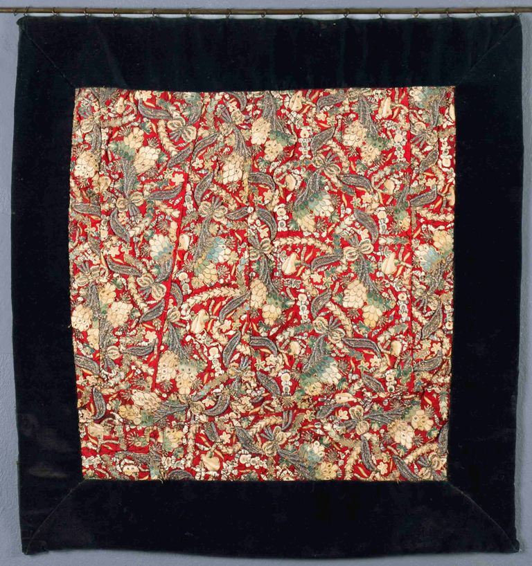 Turks wandkleedje gemaakt van stukken geborduurde stof met gouddraad