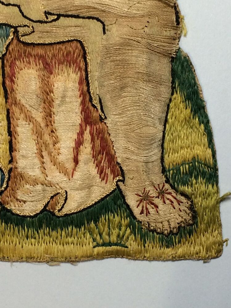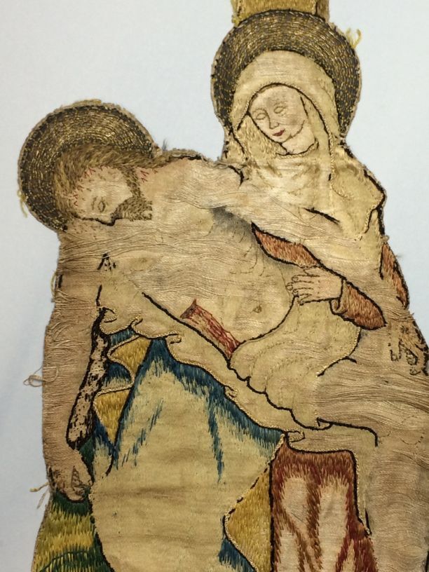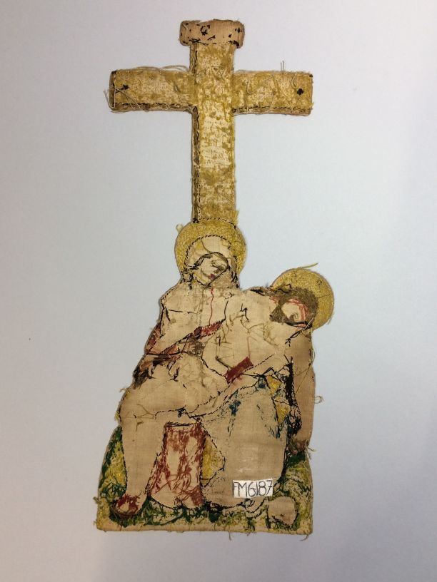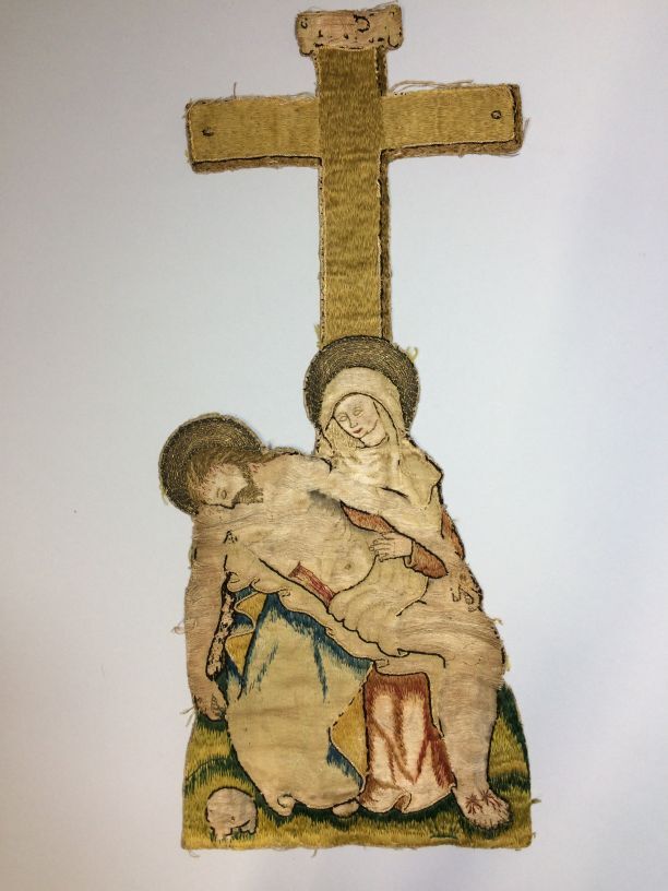 Borduurstuk voorstellende een Pietà, borduursel in zijde en goud