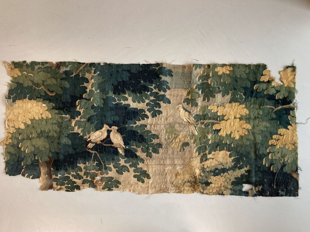 Fragment groenwerktapijt, groot rechthoekig stuk, onderdeel van 13 kleine fragmenten