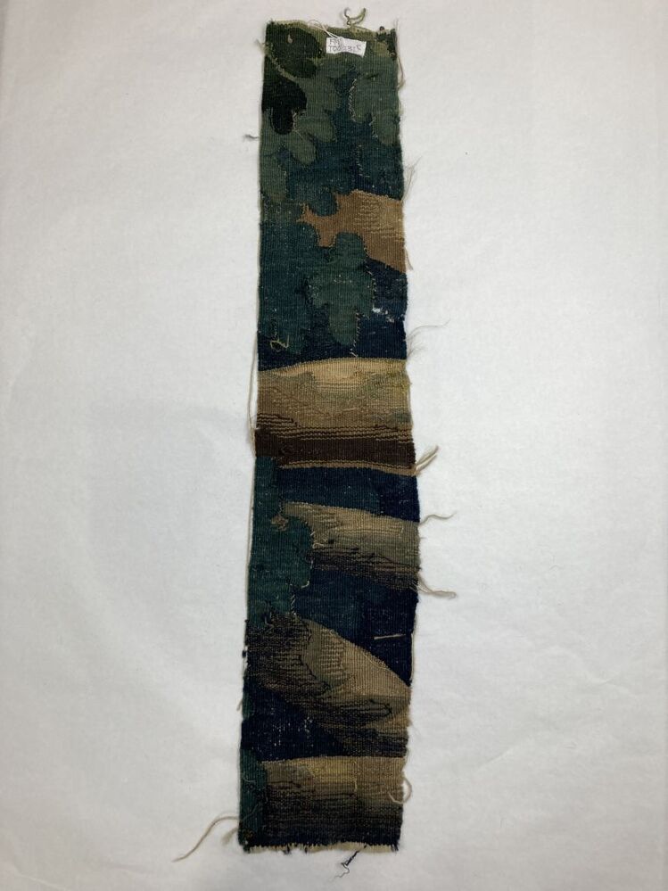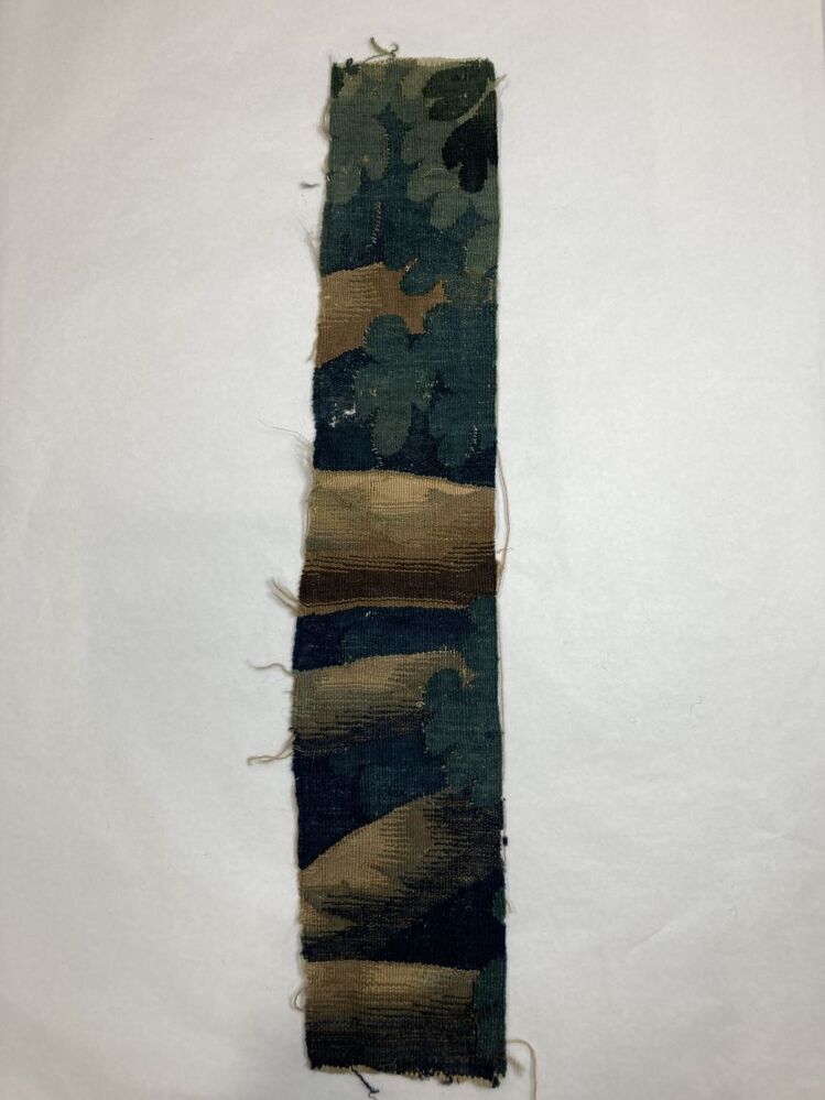 Fragment groenwerktapijt, kleine rechthoekig stuk, onderdeel van 13 kleine fragmenten