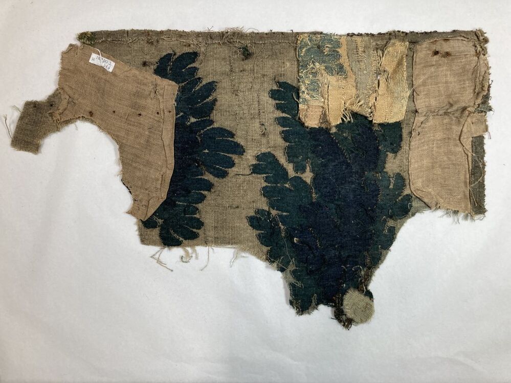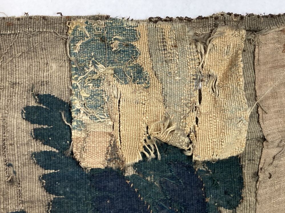 Fragment groenwerktapijt, onregelmatig gevormd stuk, onderdeel van 13 kleine fragmenten