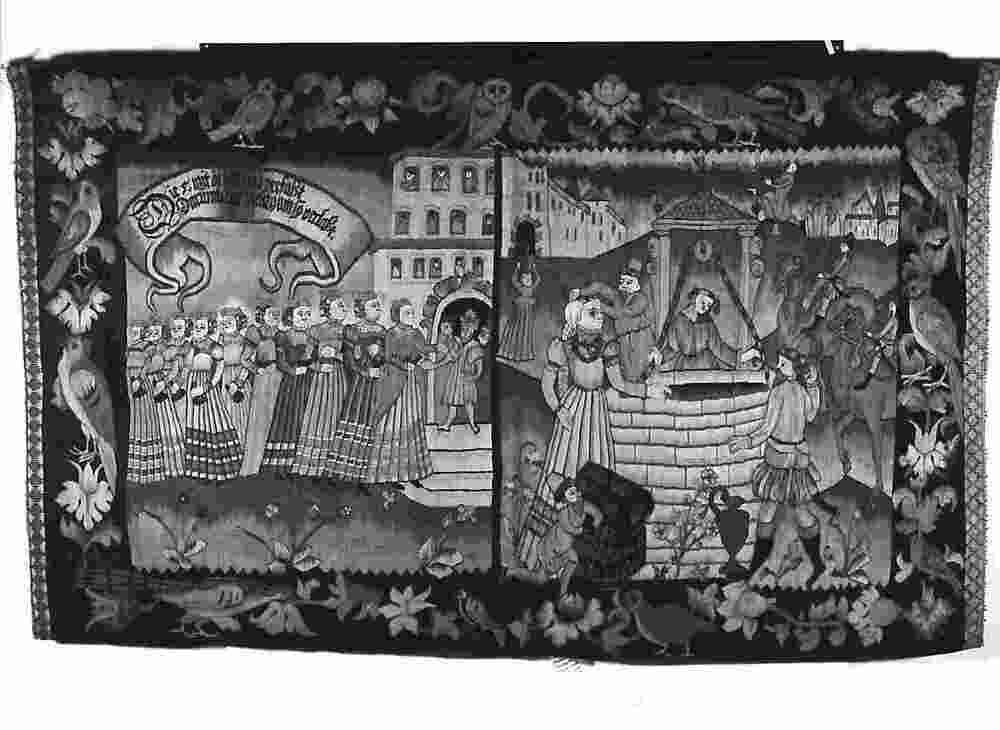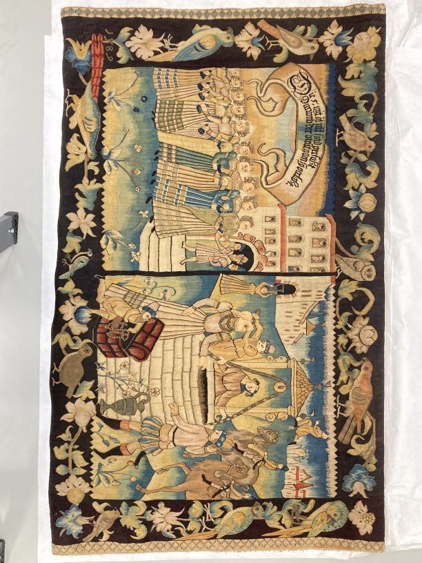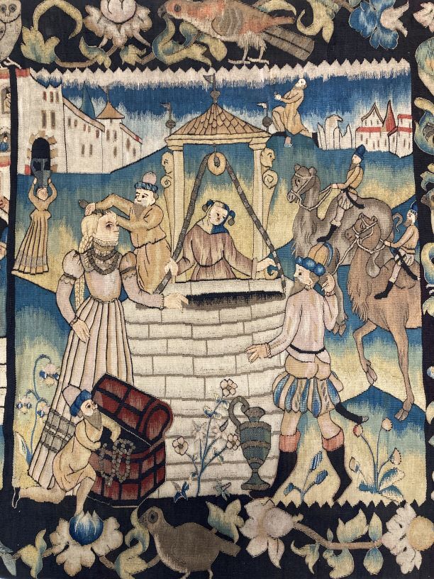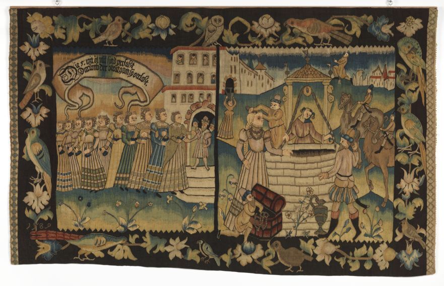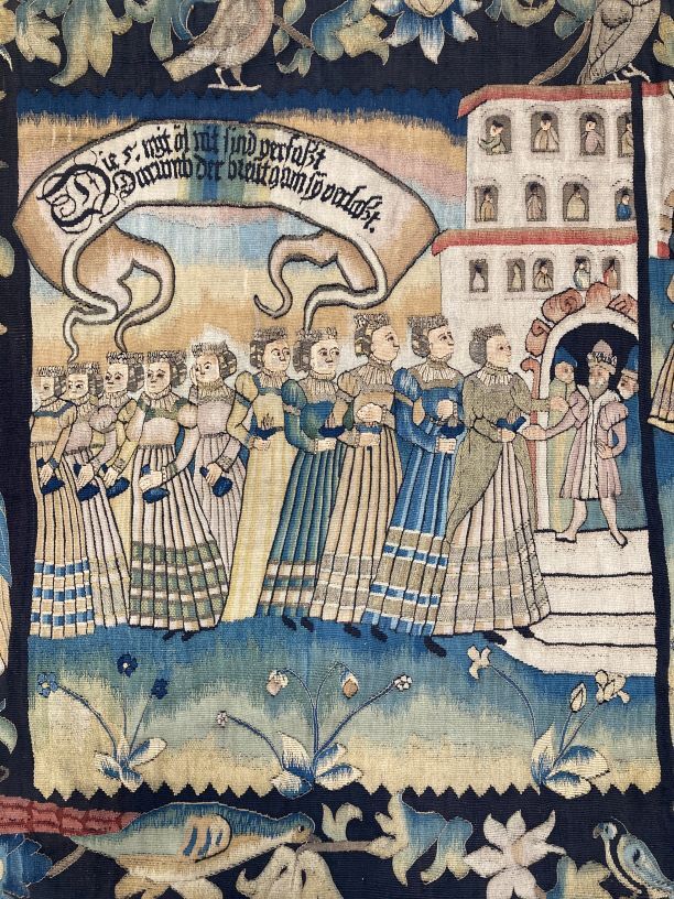 Gobelin wandtapijt met Wijze en Dwaze Maagden en Eliezer en Rebecca