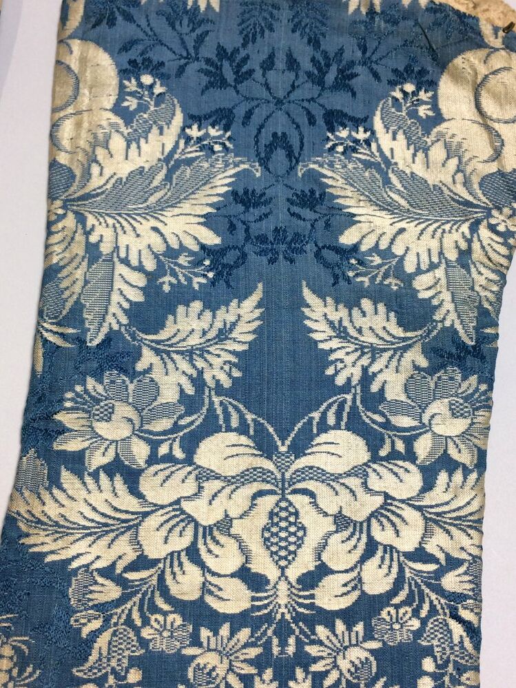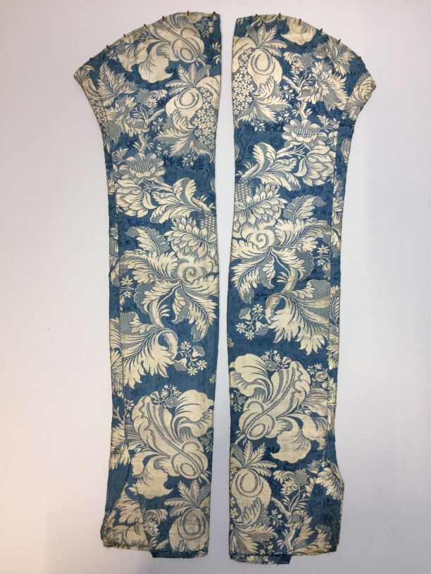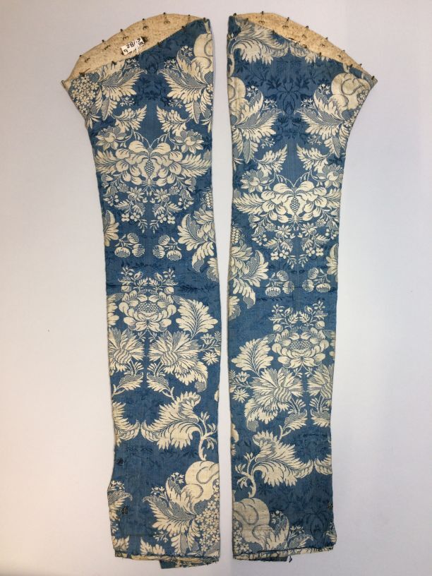 Paar losse mouwen van blauwe zijde damast gevoerd met wit katoen