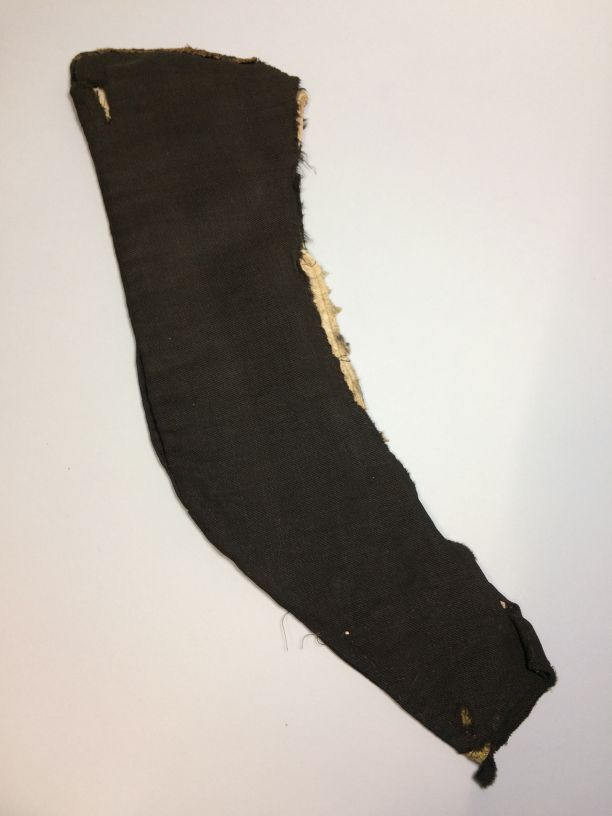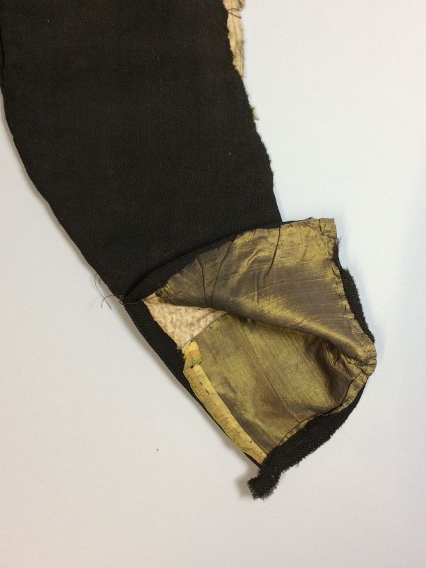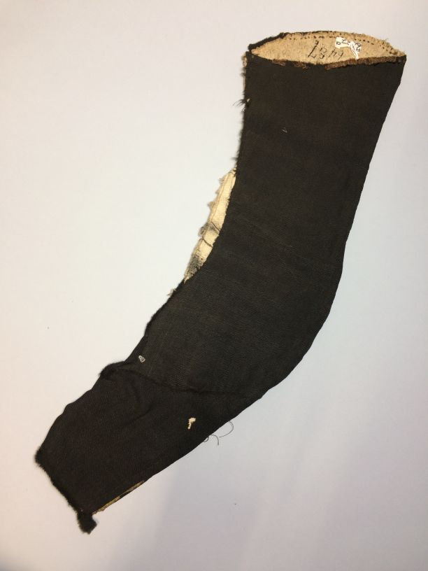 Lange nauwe mouw van zwart wollen keperstof, gevoerd met wit geruwde katoen