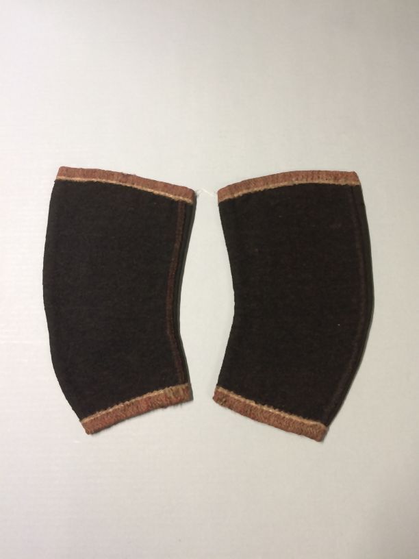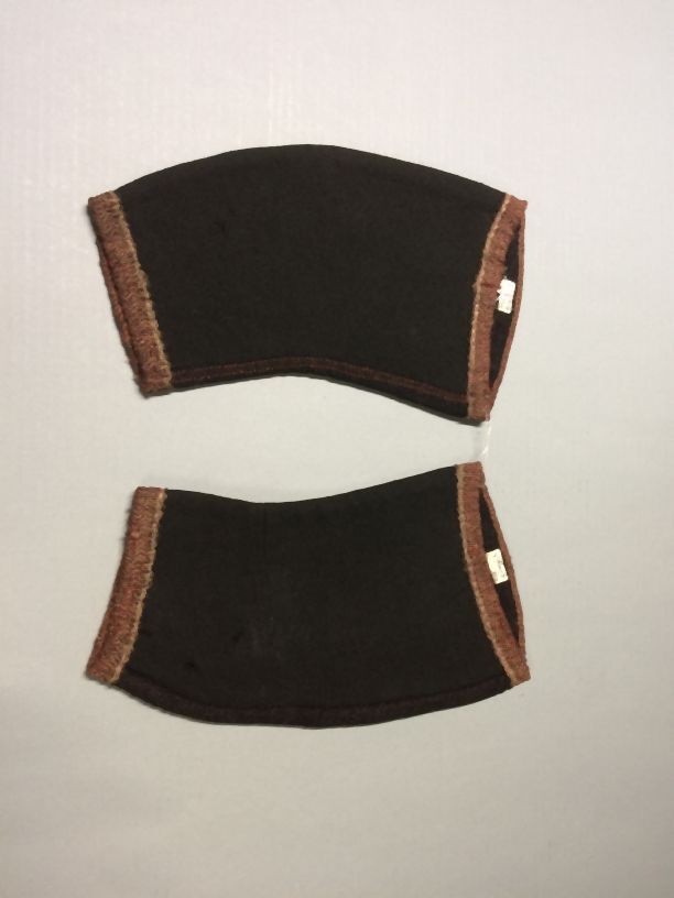 Paar voormouwen van zwart-bruin wollen keper, afgezet met bruin-rood wollen band