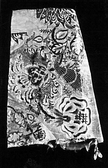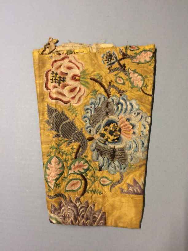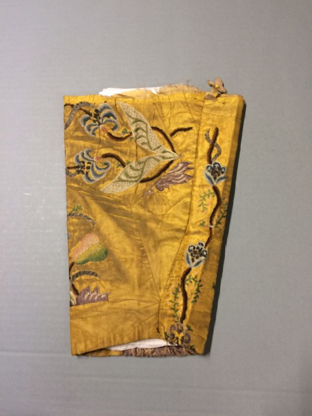 Mouw van gele ribs-zijde, verfraaid met borduurwerk van zijde