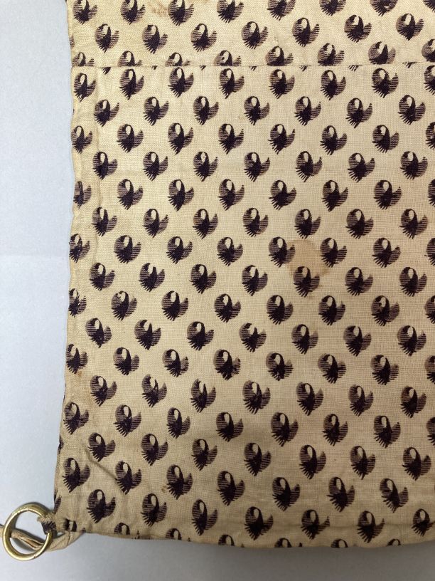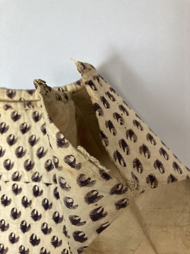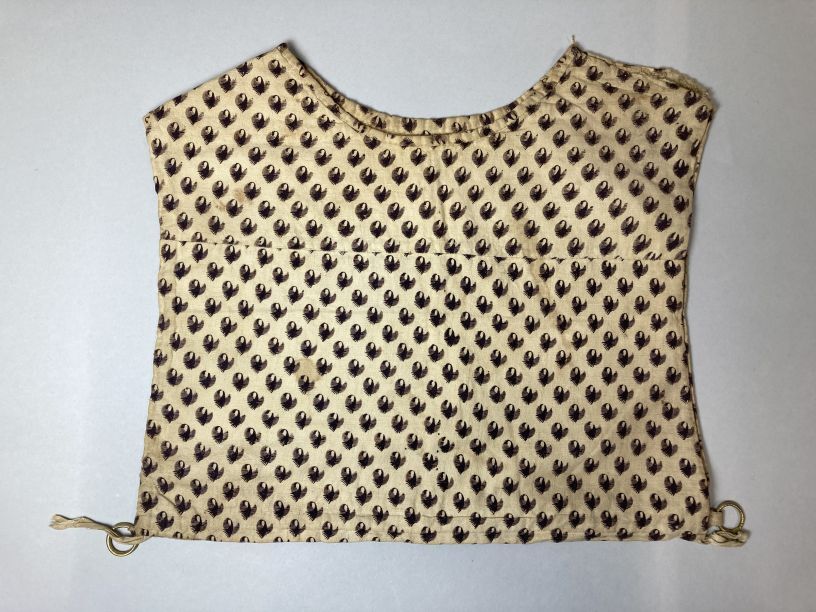 Kroplap of onderst van wit katoen bedrukt met paars strooimotief
