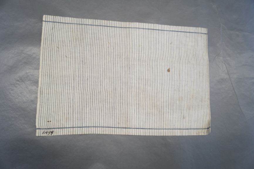 Hindelooper borstlap of foarpeldook van wit-blauw gestreept bont