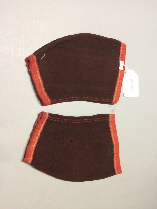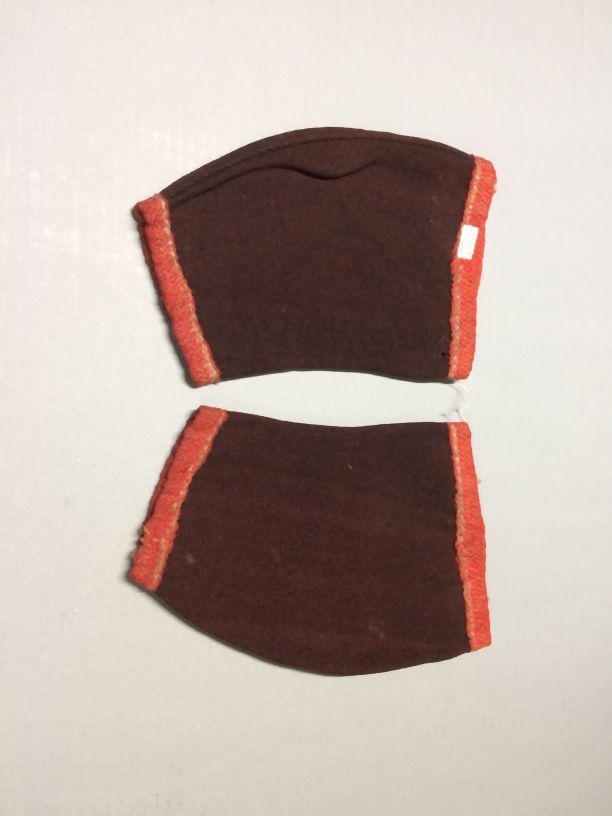 Paar voormouwen van zwart-rood wollen keper afgezet met rood wollen band