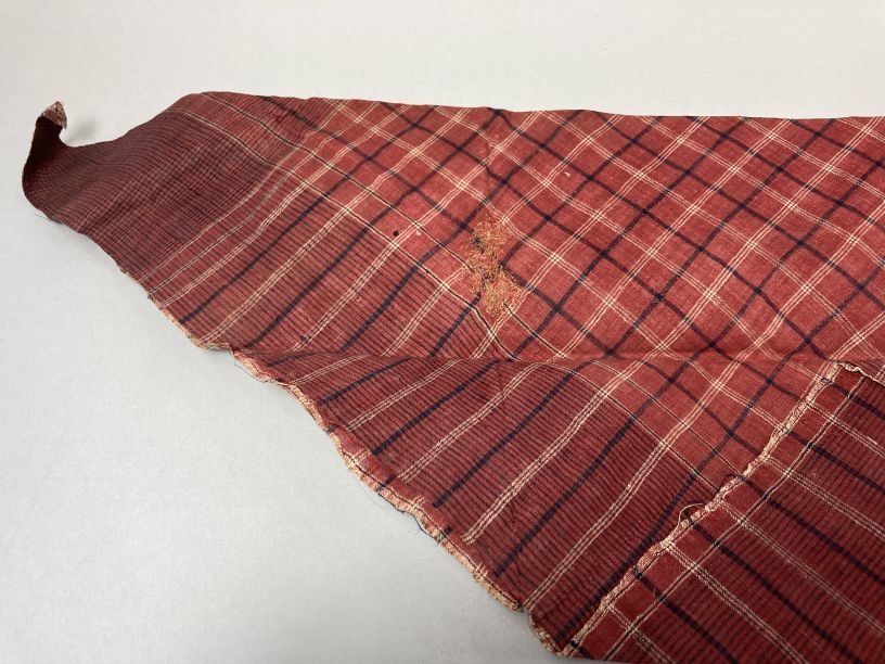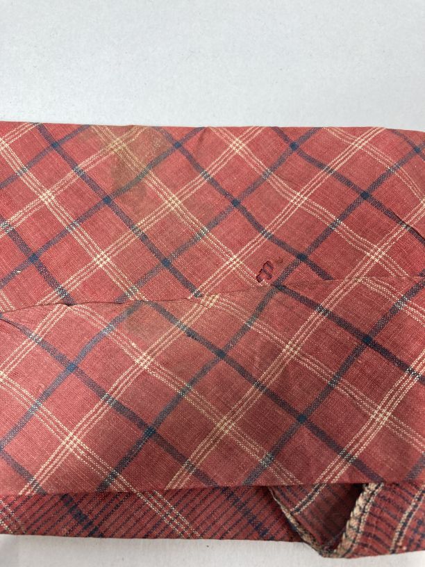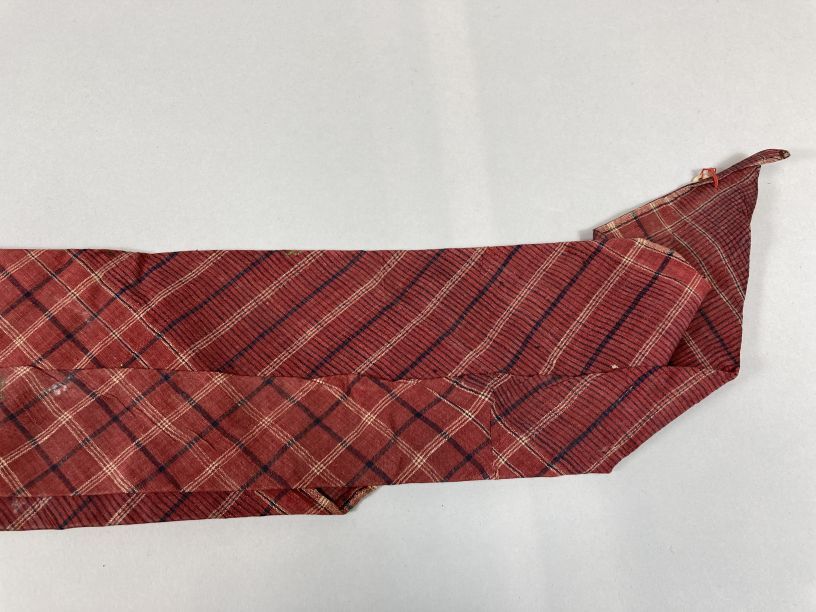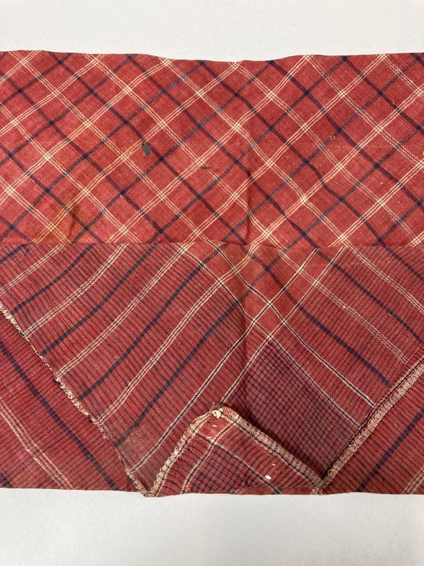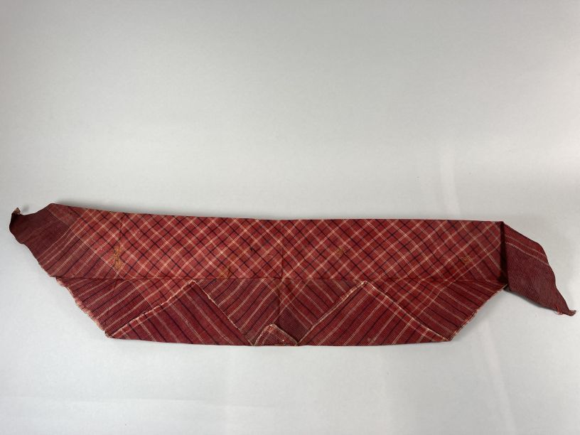 Roodbonte zondoek, gevouwen en gesteven, onderdeel van groep van vier zondoeken