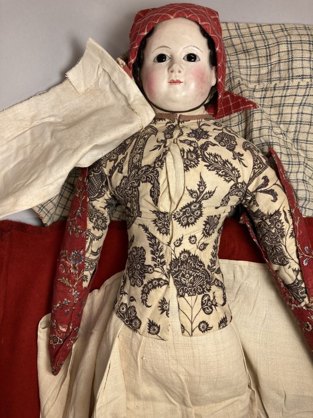 Sitsen poppensliepwentke golvende banden en dunne bloemranken op witte grond