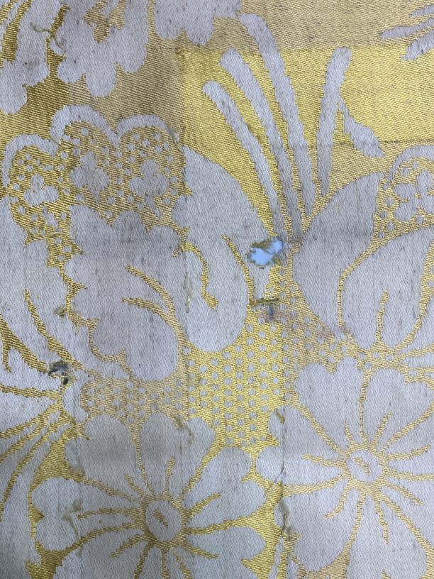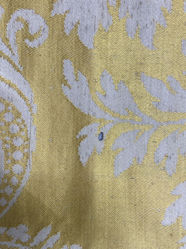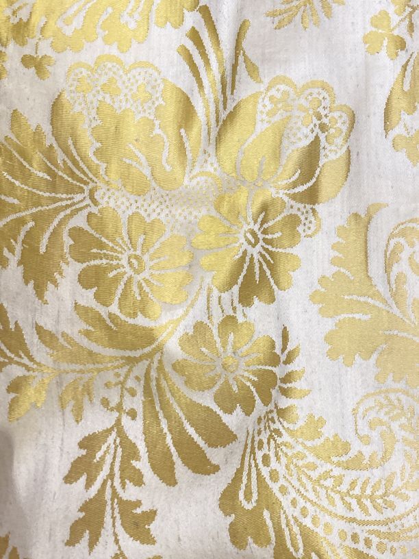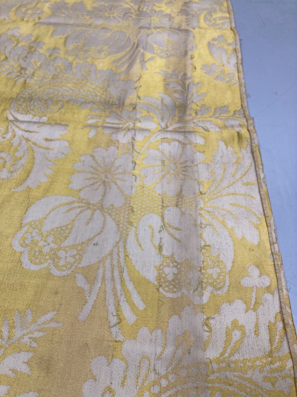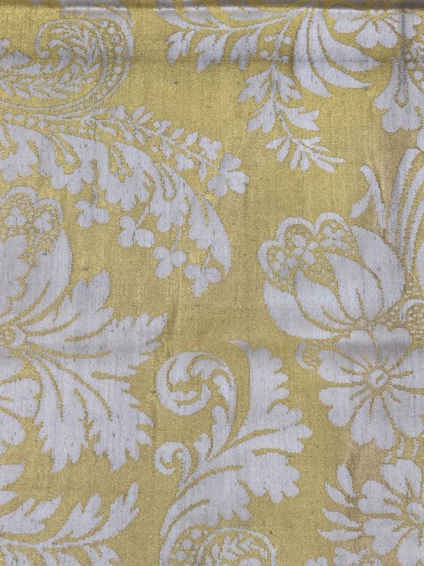 Lap damast, groot floraal motief, van gele zijde en ecru wol