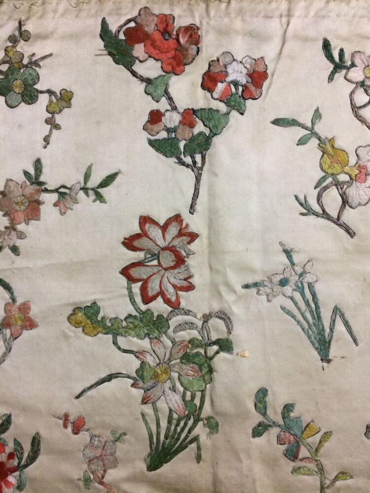 Verwijst naar werken die zich kenmerken door een patroon of ontwerp dat is uitgevoerd in met draad of fijn metaaldraad gemaakte steken. De patronen worden gewoonlijk uitgevoerd op stof, maar ook leer, papier of andere media kunnen worden gebruikt; de werken kunnen bedoeld zijn om ingelijst te worden of om kleding, bedtextiel, meubelbekleding, kussens, altaarkleden, ceremoniële voorhangen of andere zaken te versieren. (AAT)