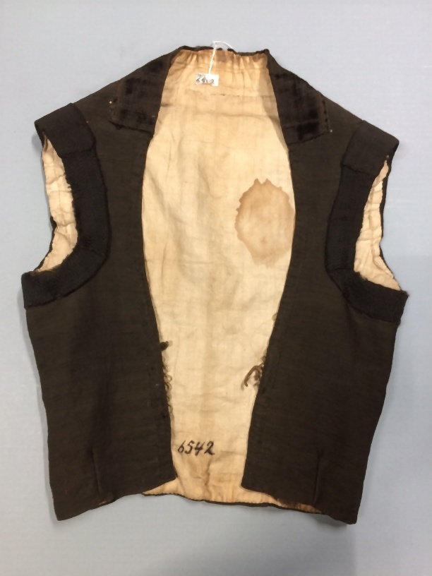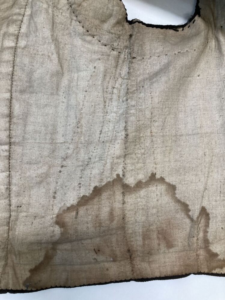 Hindelooper rijglijf of oerlof van zwart brat afgezet met stems en keperband