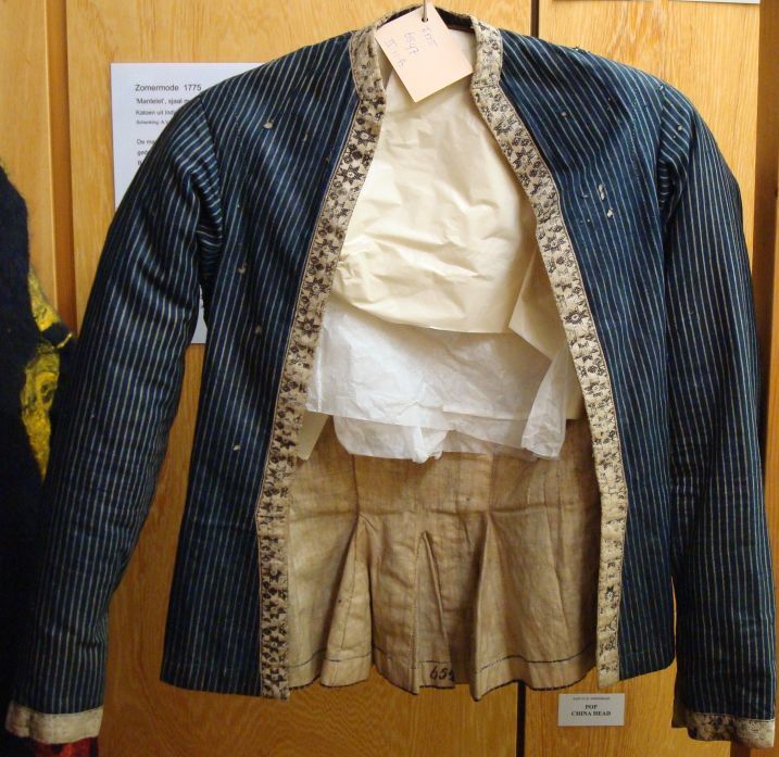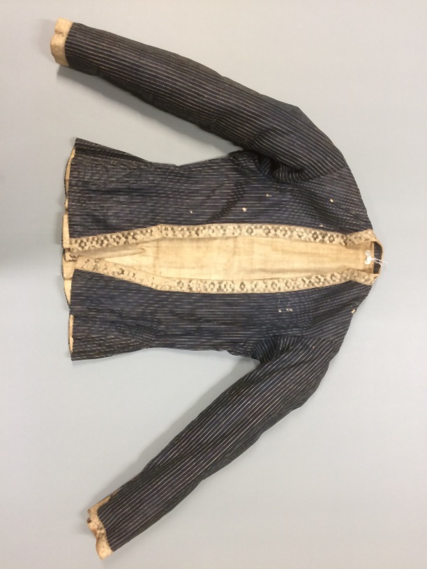 Hindeloper kassekijntje voor zware rouw van blauw-wit gestreept katoen