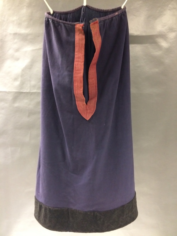 Blauw lakense onderrok, wolhimd, met zwart fluweel langs zoom