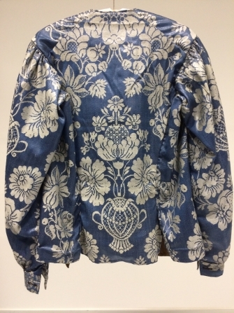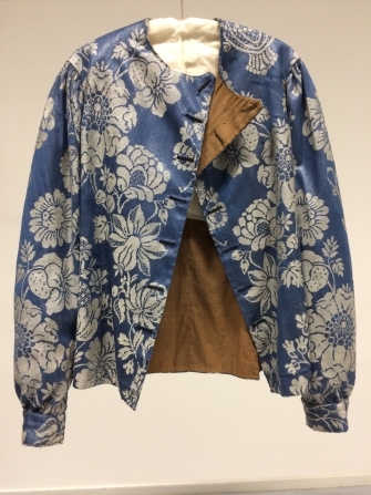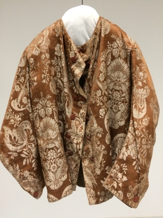 Baeitje of mannevest van bruine damast met witte bloemen