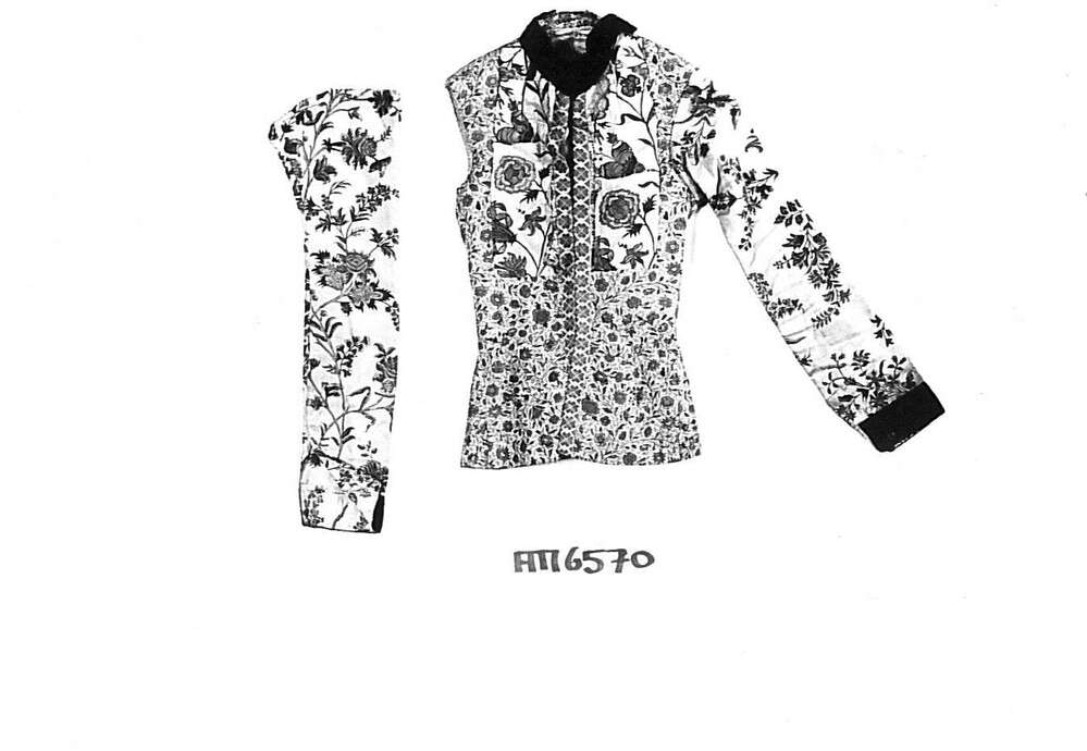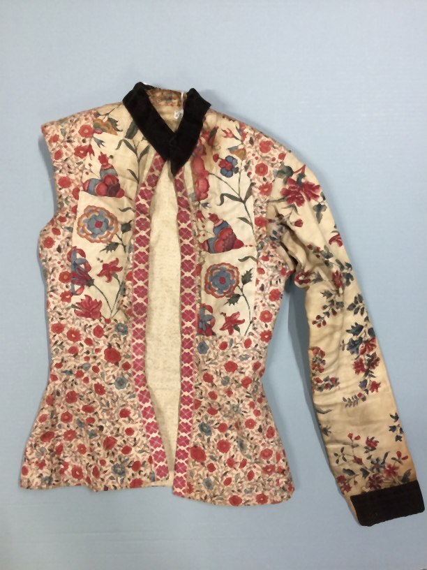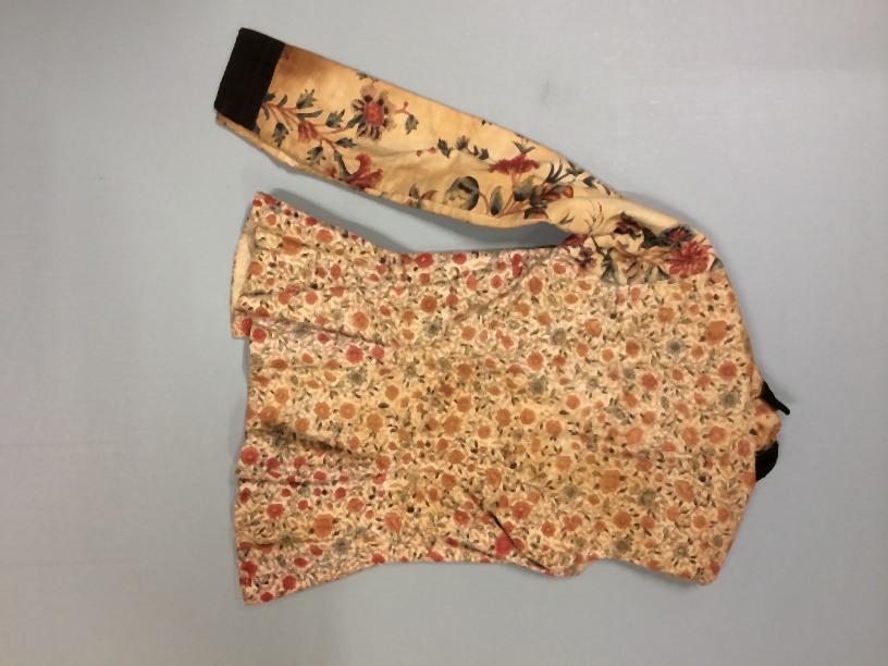 Hindelooper onderst oerlof voor de zomer, van Europees bedrukt katoen met kleine bloemetjes ,met front en mouwen van verschillende Indiase sits, heeft losse mouw als onderdeel