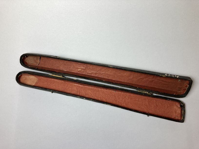 Doosje behorend bij waaier met Chine de Commande montuur en beschilderd blad