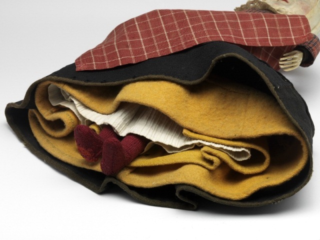 Witte gestreepte onderrok, onderdeel van kostuum pop