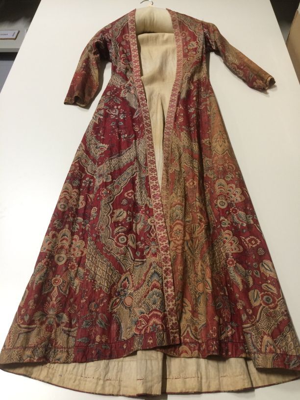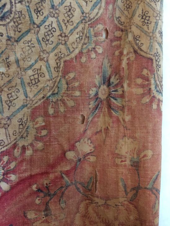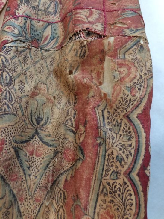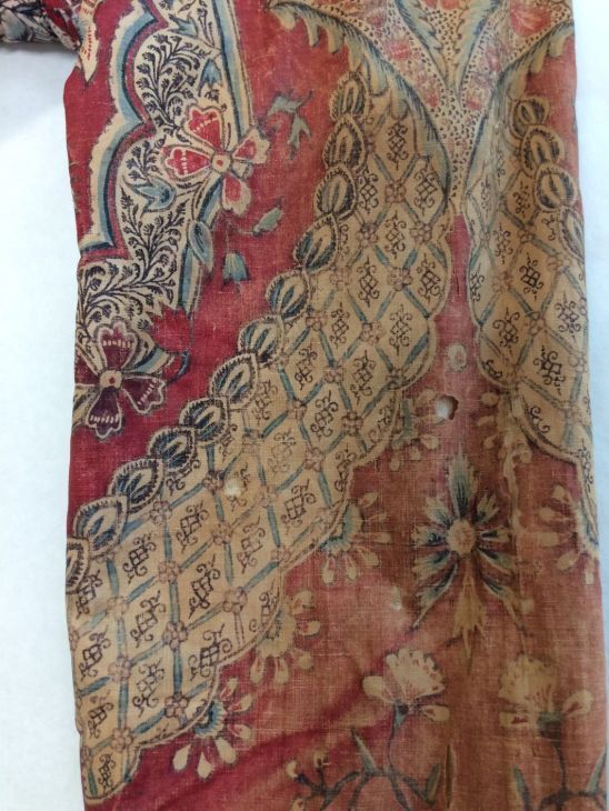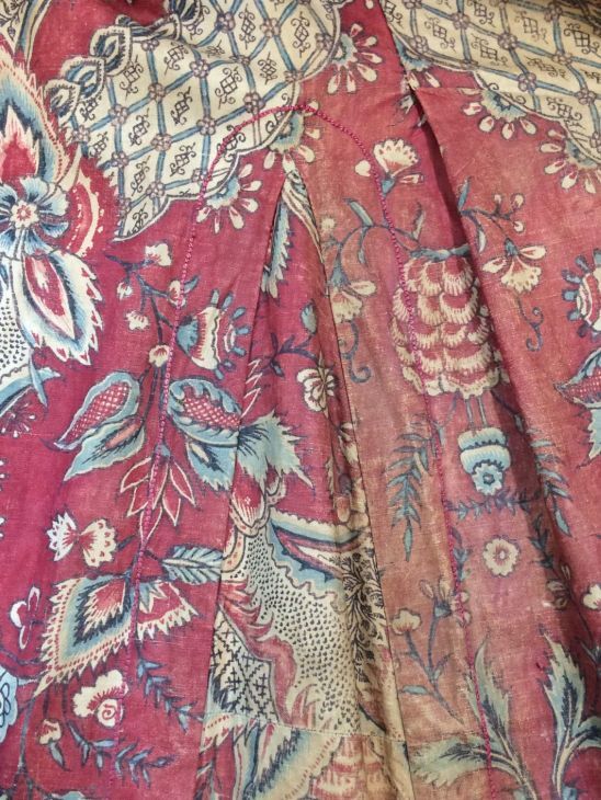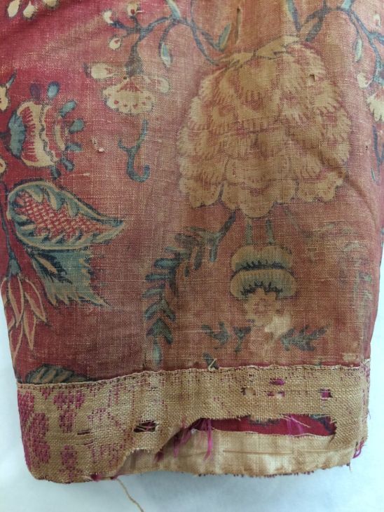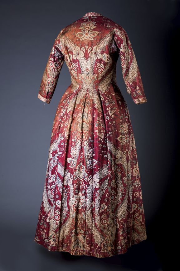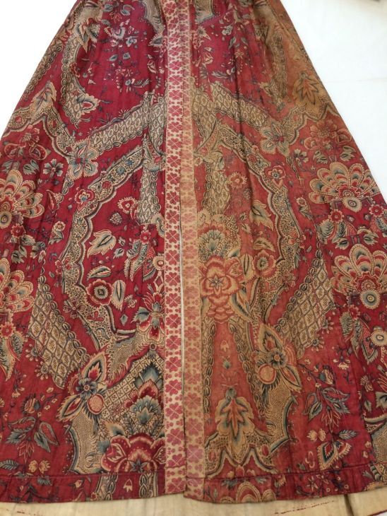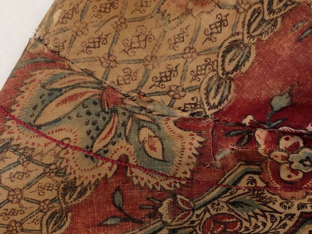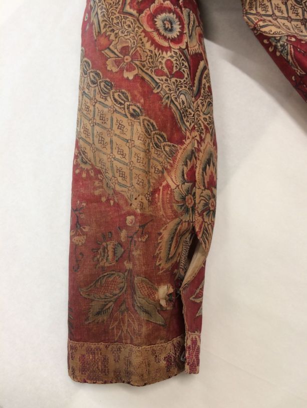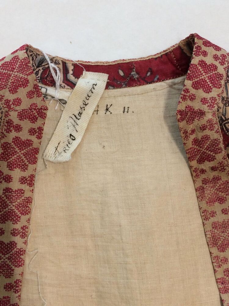Sitsen Hindeloper wentke, vrouwenjas, met symmetrische medaillons met palmetmotieven en bloemranken op rode grond