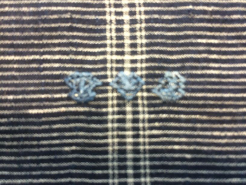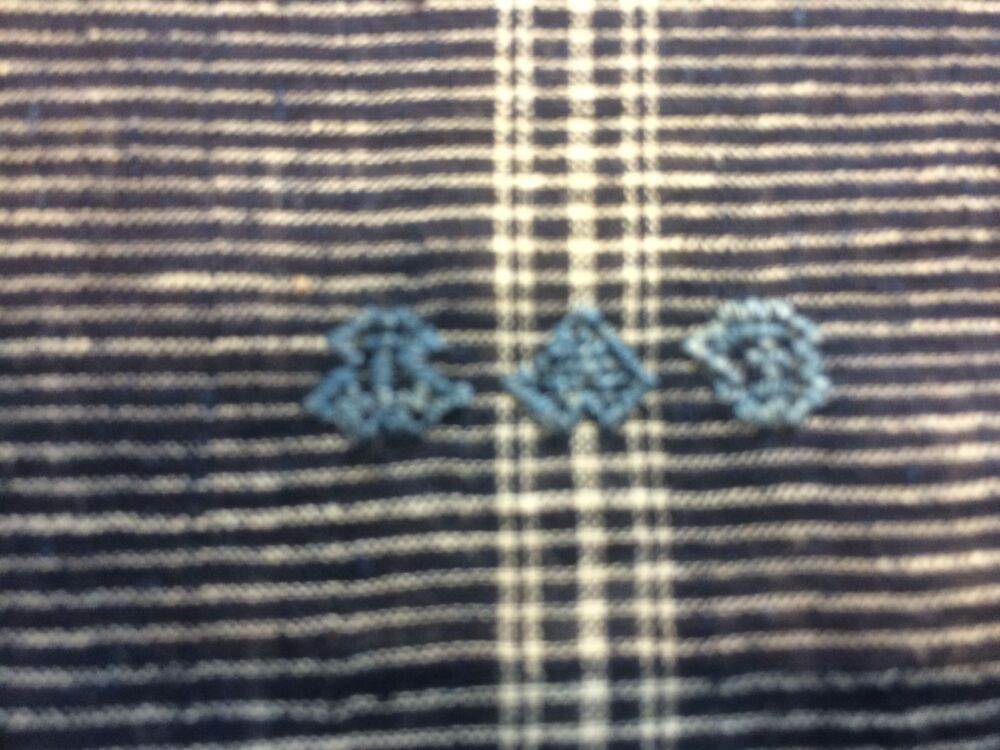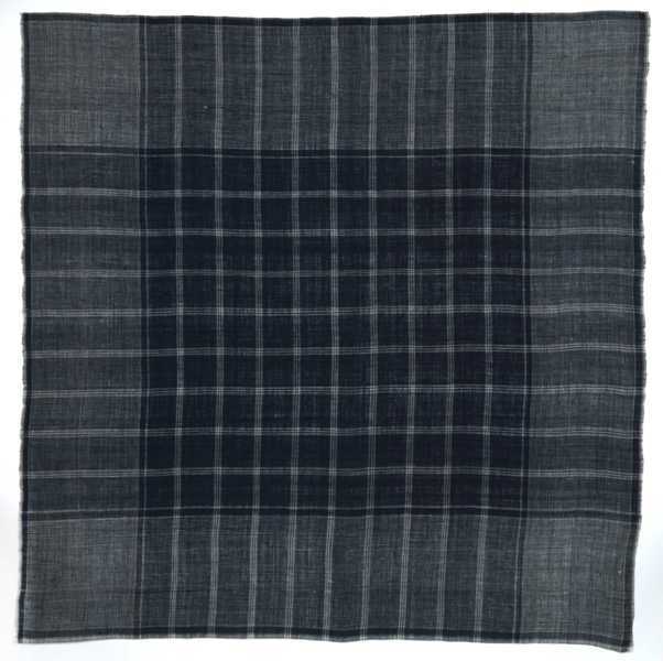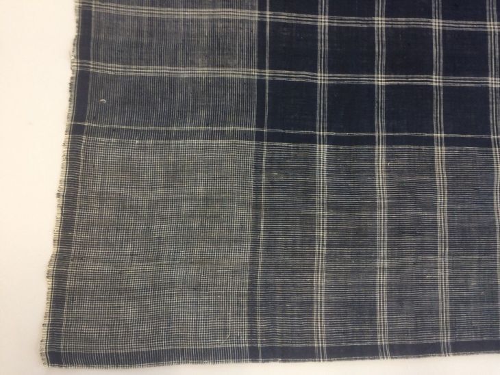 Hindelooper sondook voor de zware rouw met ingeweven ruit in donkerblauw en wit met 'lapkede mei swart kouhoarnde in 'e mids'