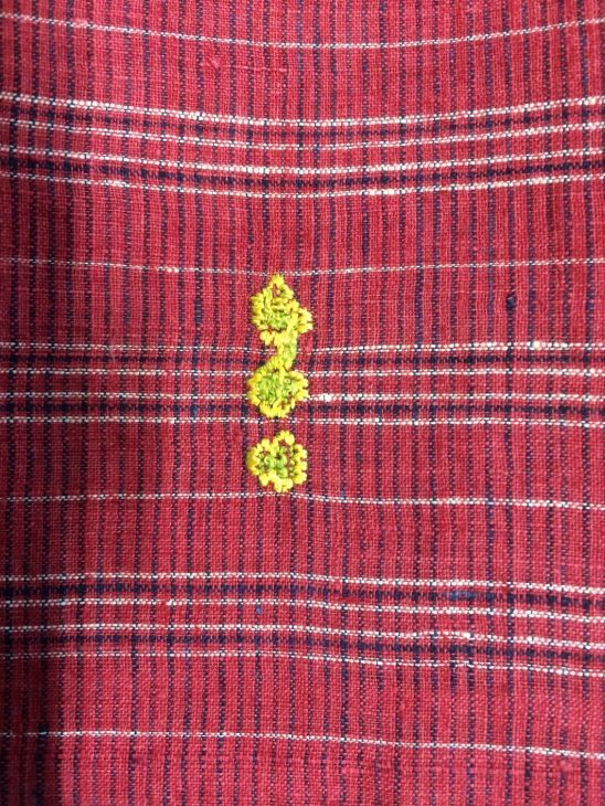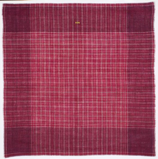 Hindelooper sondook in geruit rood, wit en blauw bont met initialen: T, hart en L