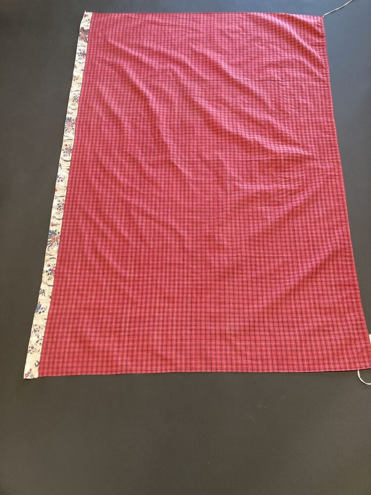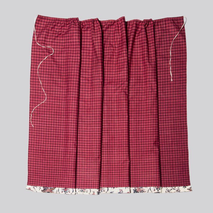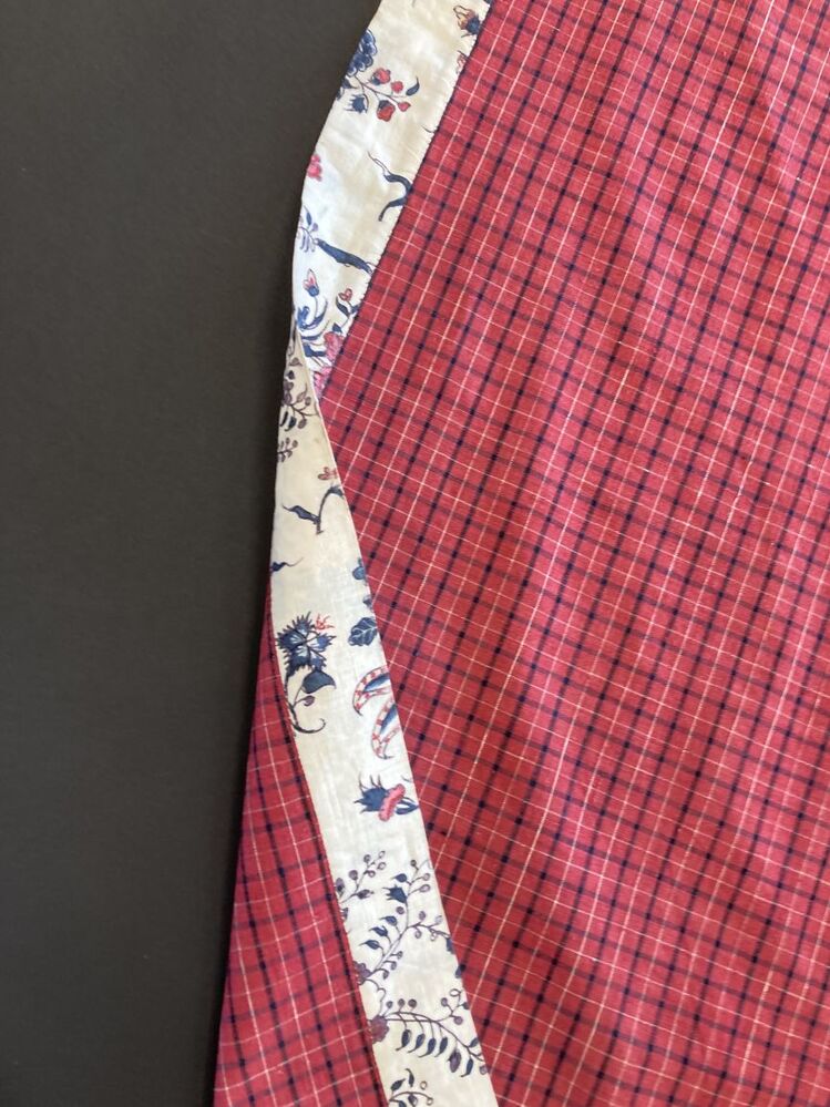 Bont geruit schort, van het staal Lyts krabbede, met sitsen zoomrand