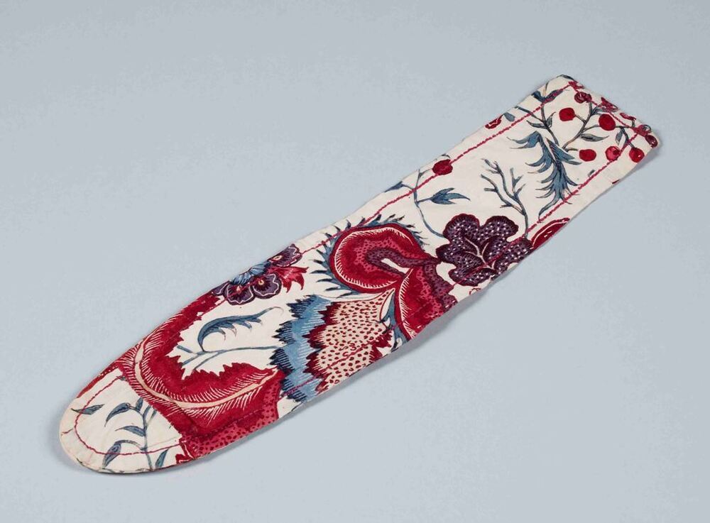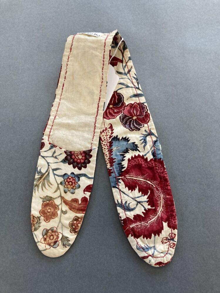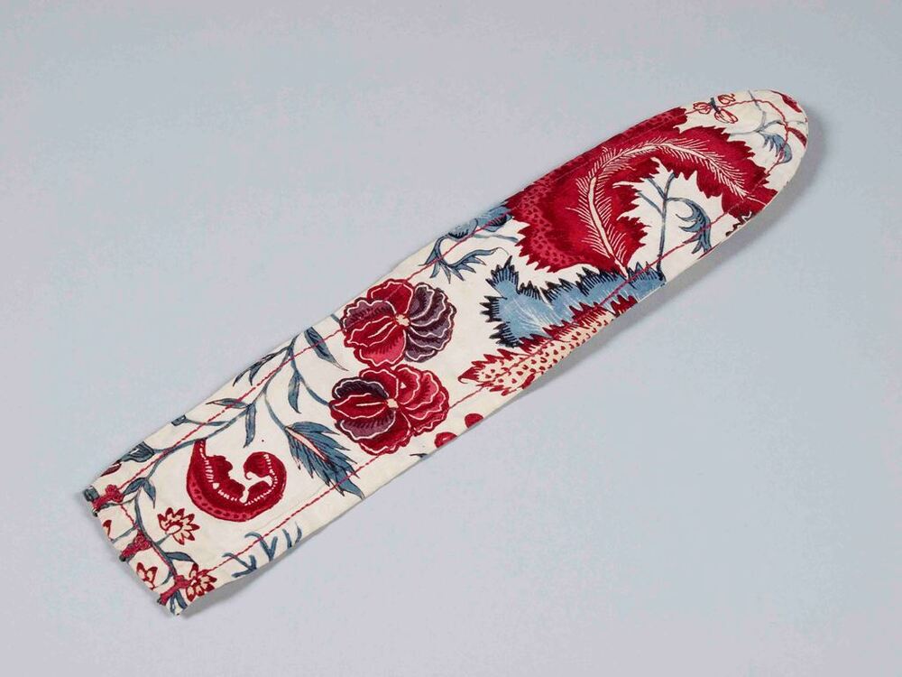 Hindelooper sitsen bereklauwen of knoestjes, met fragment van groot bloempatroon op witte grond