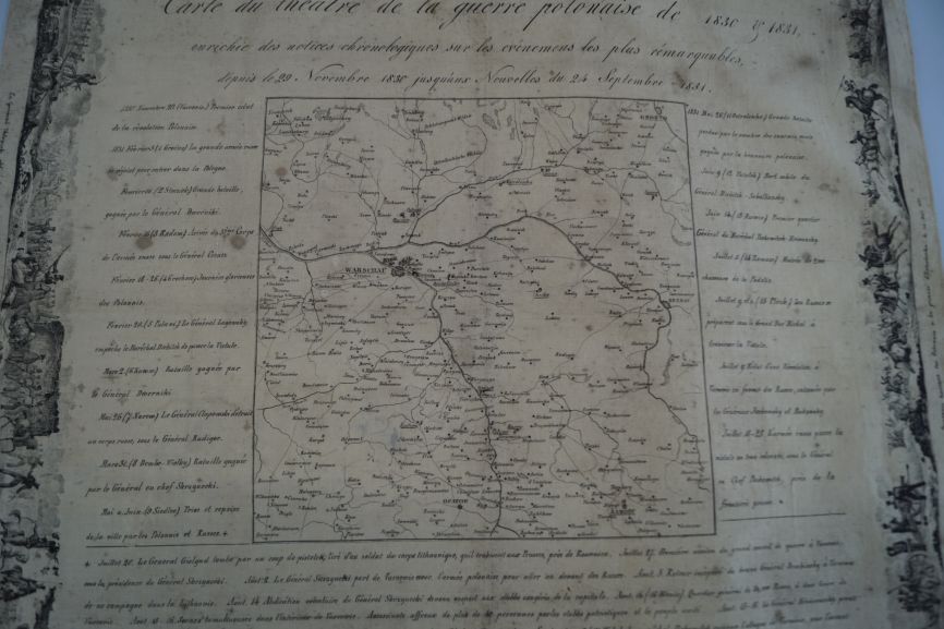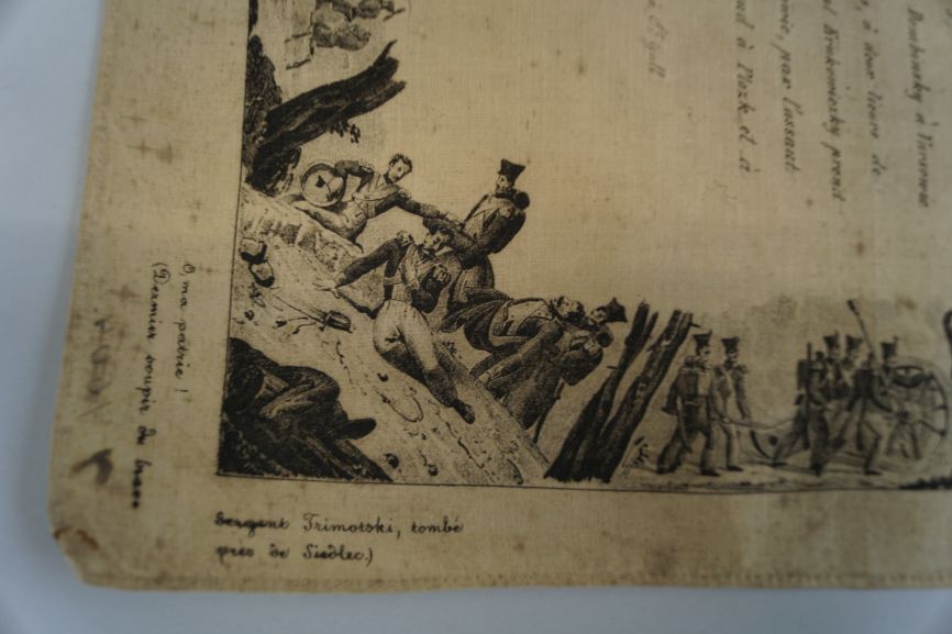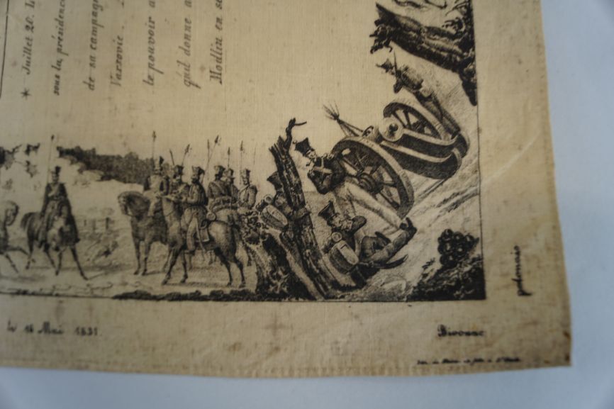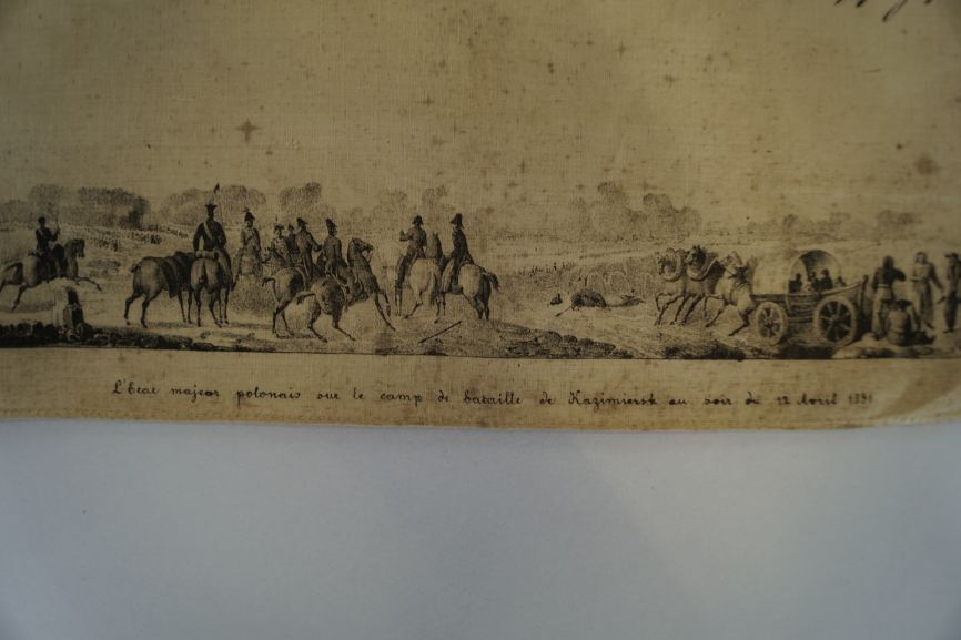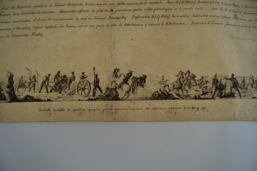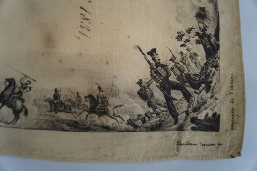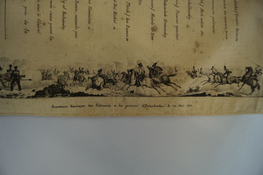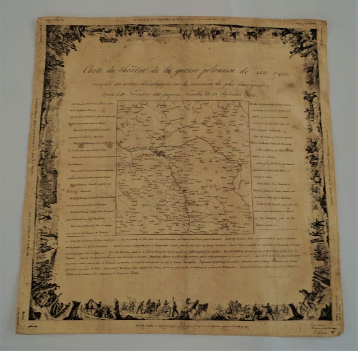 Gedenkdoek van bedrukt katoen met 'Carte du théatre de la guerre polonaise de 1830-1831'