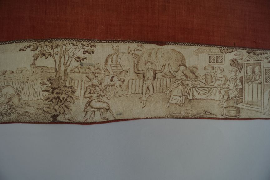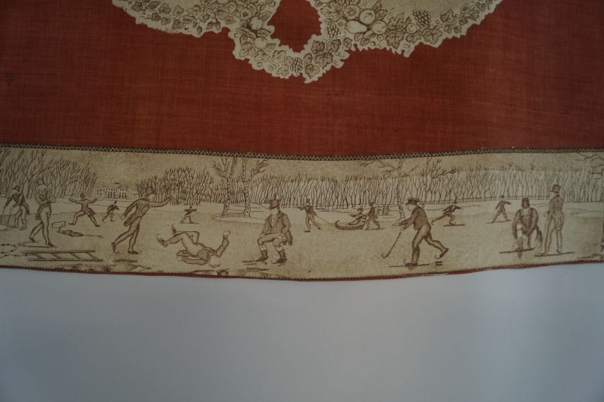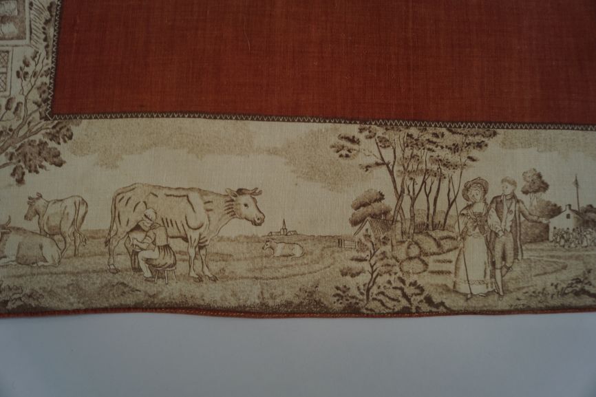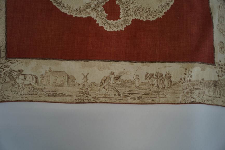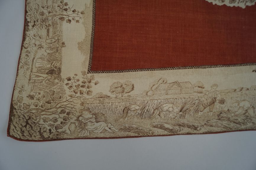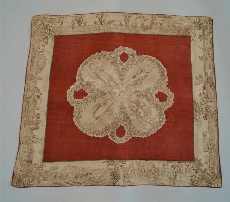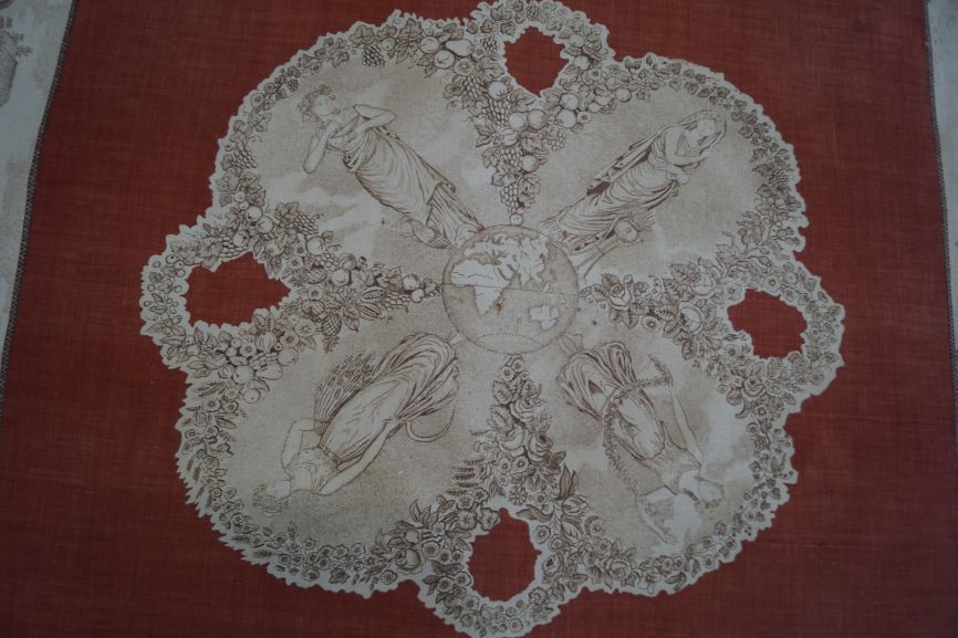 Gedenkdoek van bedrukt katoen met afbeelding van de jaargetijden in middenrozet en rand