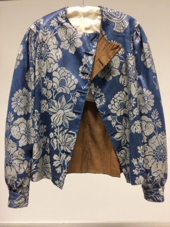 Baeitje of mannenvest van donkerblauwe damast met ingeweven bloemen