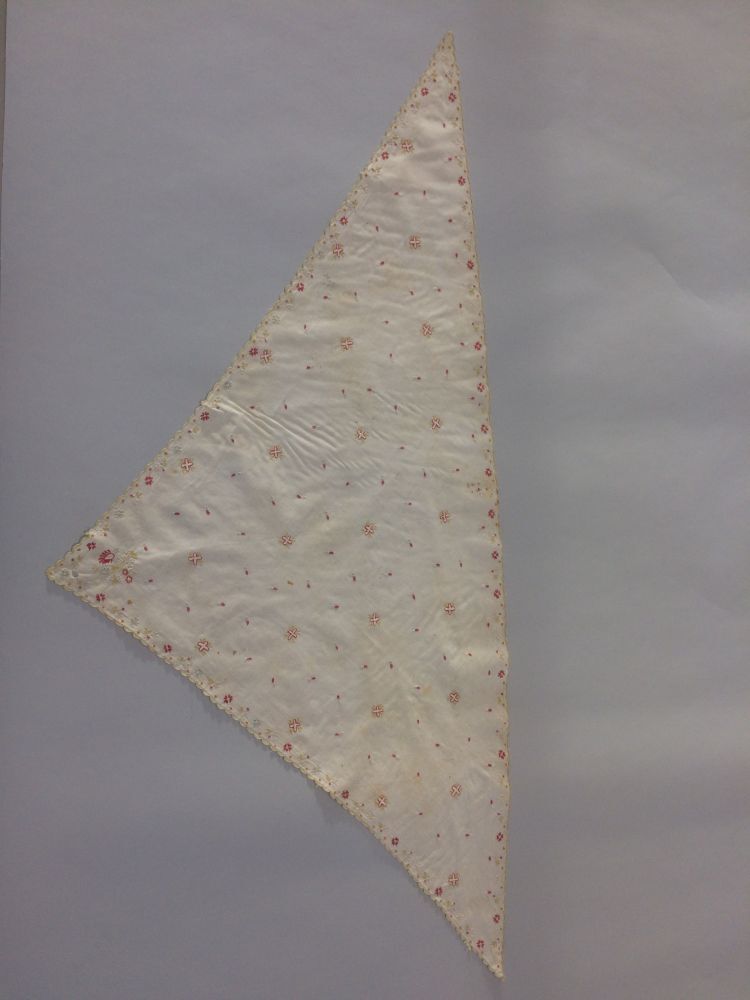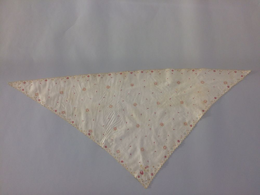 1) hals- of hoofddoek die met een tip (uiteinde) op de rug wordt vastgespeld. https://data.cultureelerfgoed.nl/term/id/cht/00c8692f-af9f-490f-b4ec-ec045b417f30