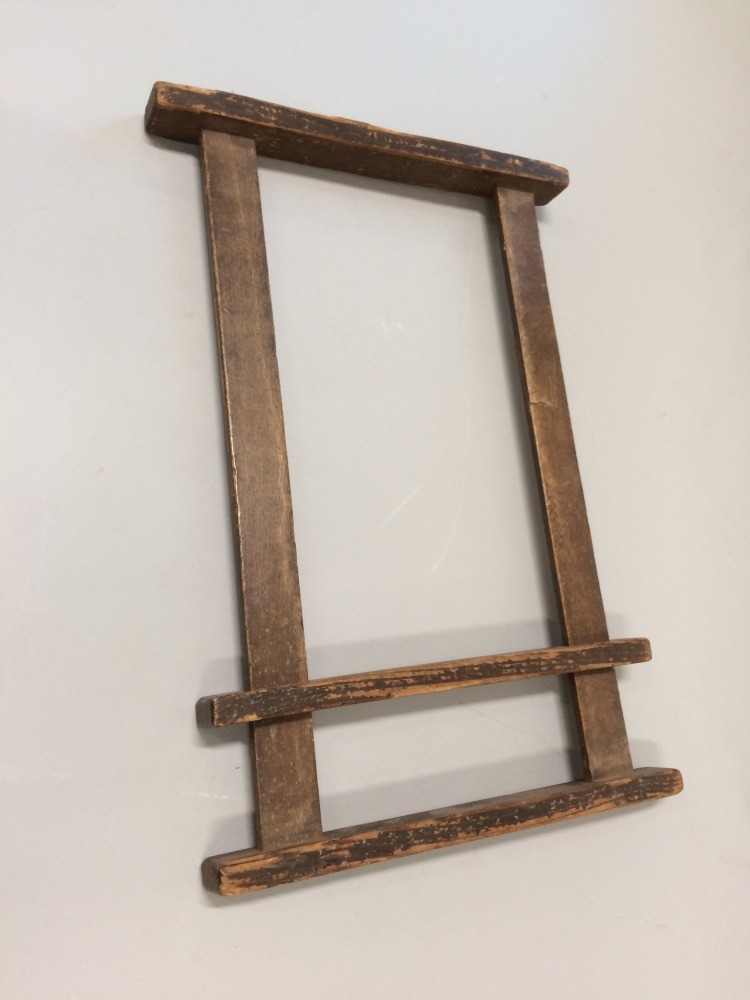 Mutsenpijpraam van hout met achtentwintig ronde stokjes