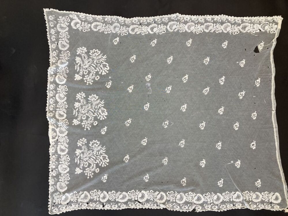 Schortje van witte met bloemen 'benaaide' tule