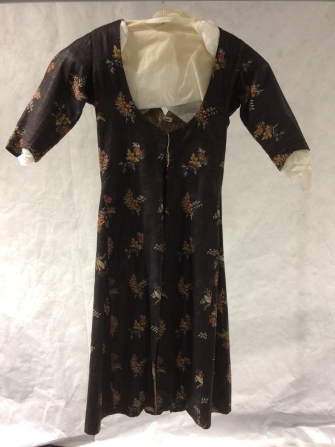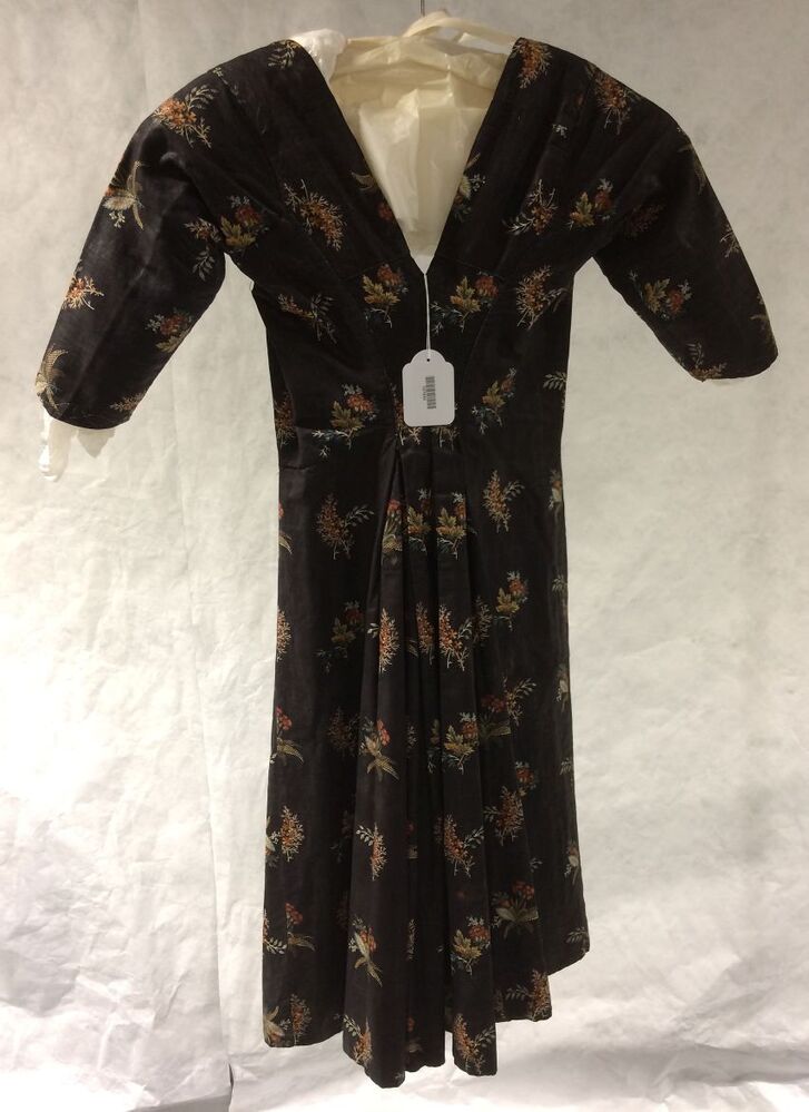 Sitsen vrouwenjak, nachtgrond, bedrukt met vier soorten gestrooide boeketjes