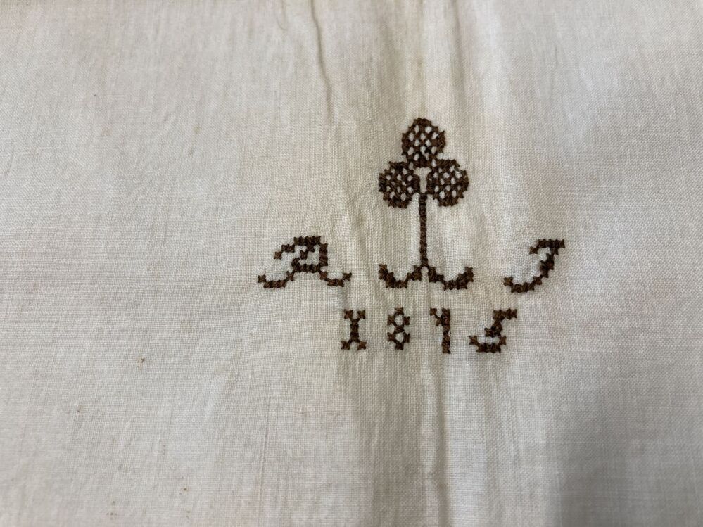 Peluwsloop van linnen met gehaakt tussenzetsel, gemerkt R.J. 1815