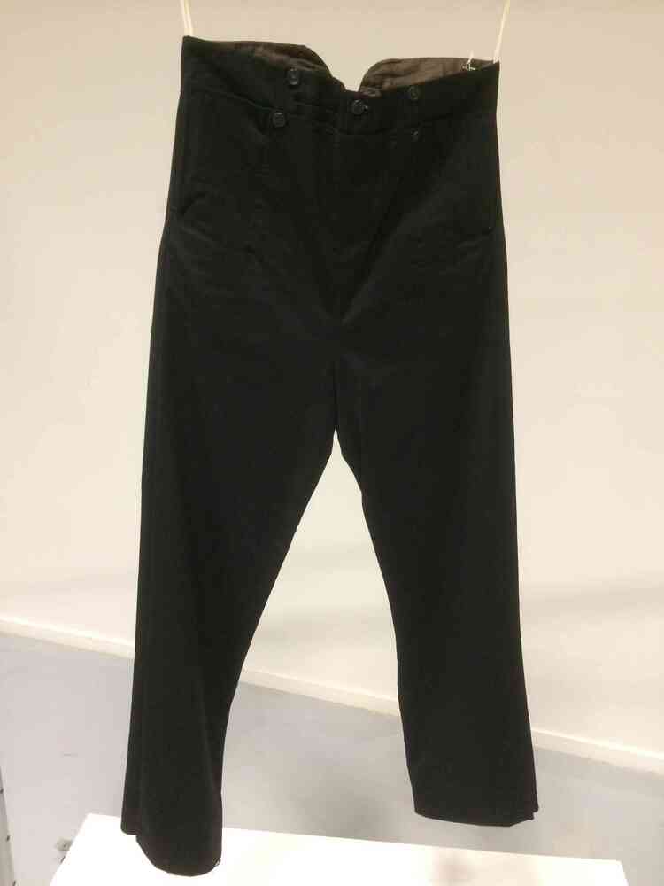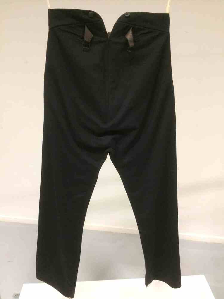 Zwarte lange broek van laken met klepsluiting
