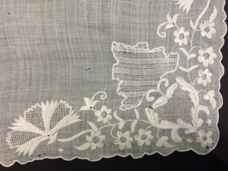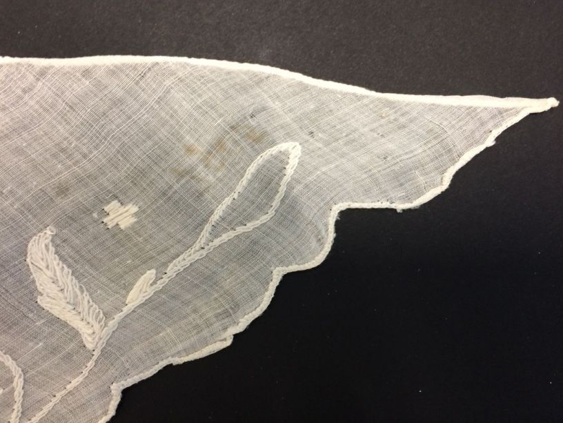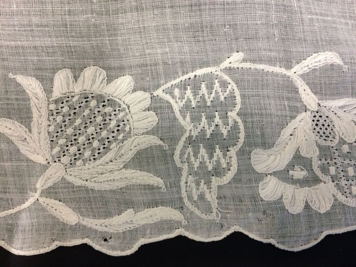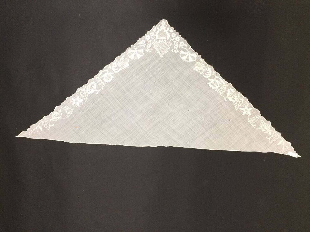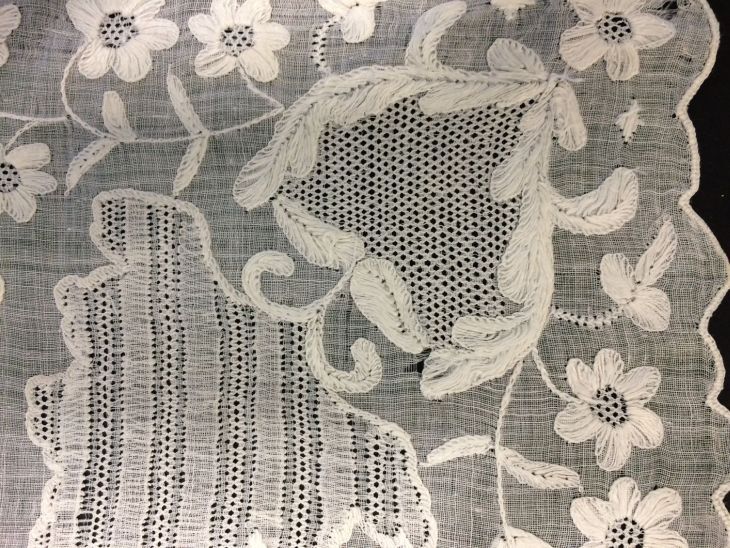 Zijde-achtige linnen batist fichu met geborduurde opengewerkte bloemenrand