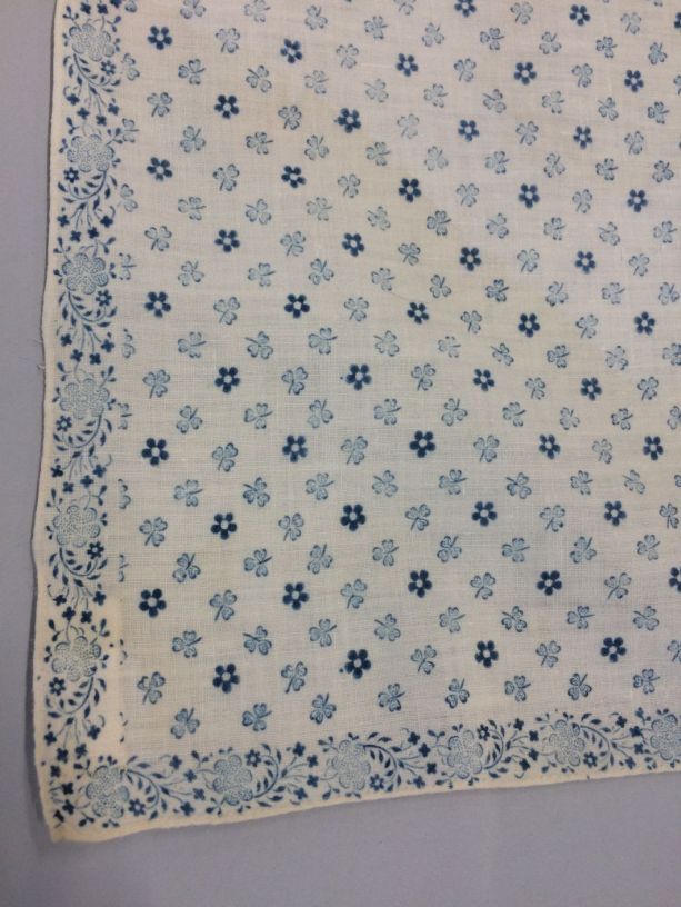 Vierkante bedrukte katoenen doek of sjaal met lichtblauwe motiefjes op wit fond