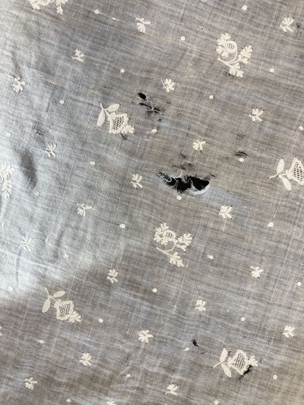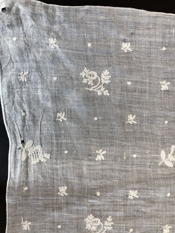 Vierkante halsdoek van witte neteldoek met bloempjes bezaaid